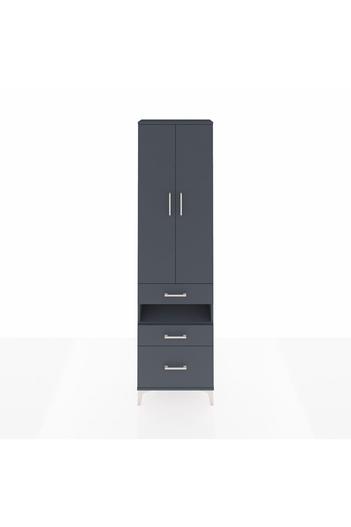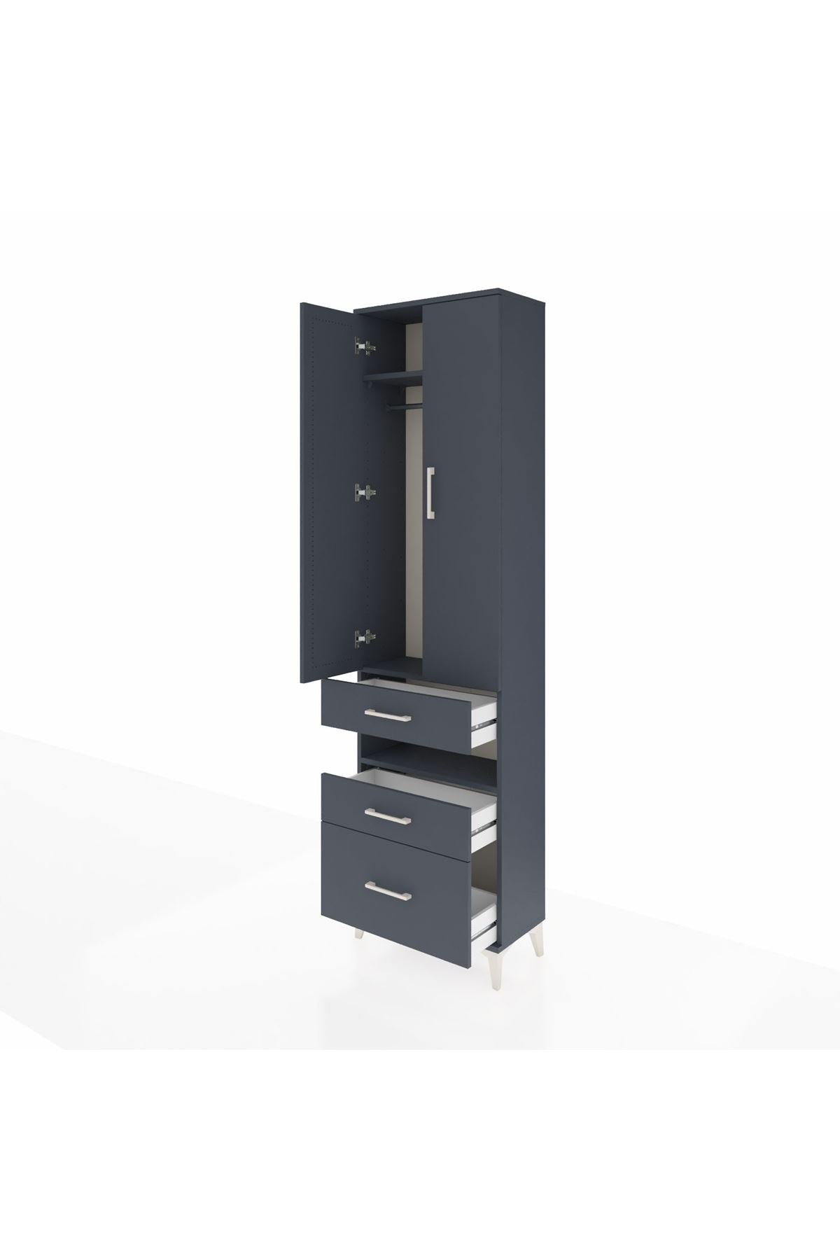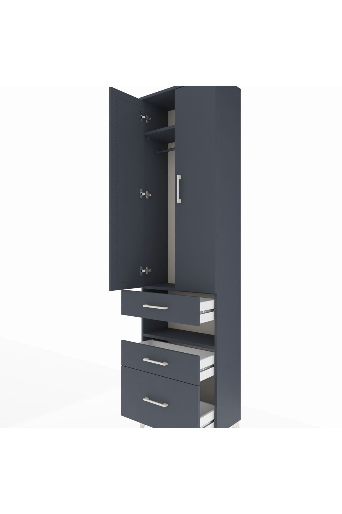 Arges Dolap 3 Raflı 3 Çekmeceli Tek Askılı 60x30x221 Antrasit-Antrasit