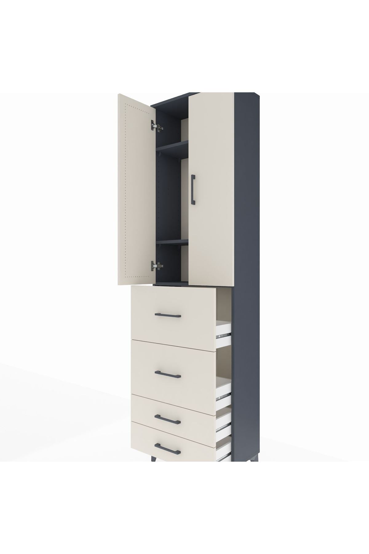 Arges Dolap 3 Raflı 4 Çekmeceli 2 Kapaklı 60x30x221 Antrasit-Aytaşı