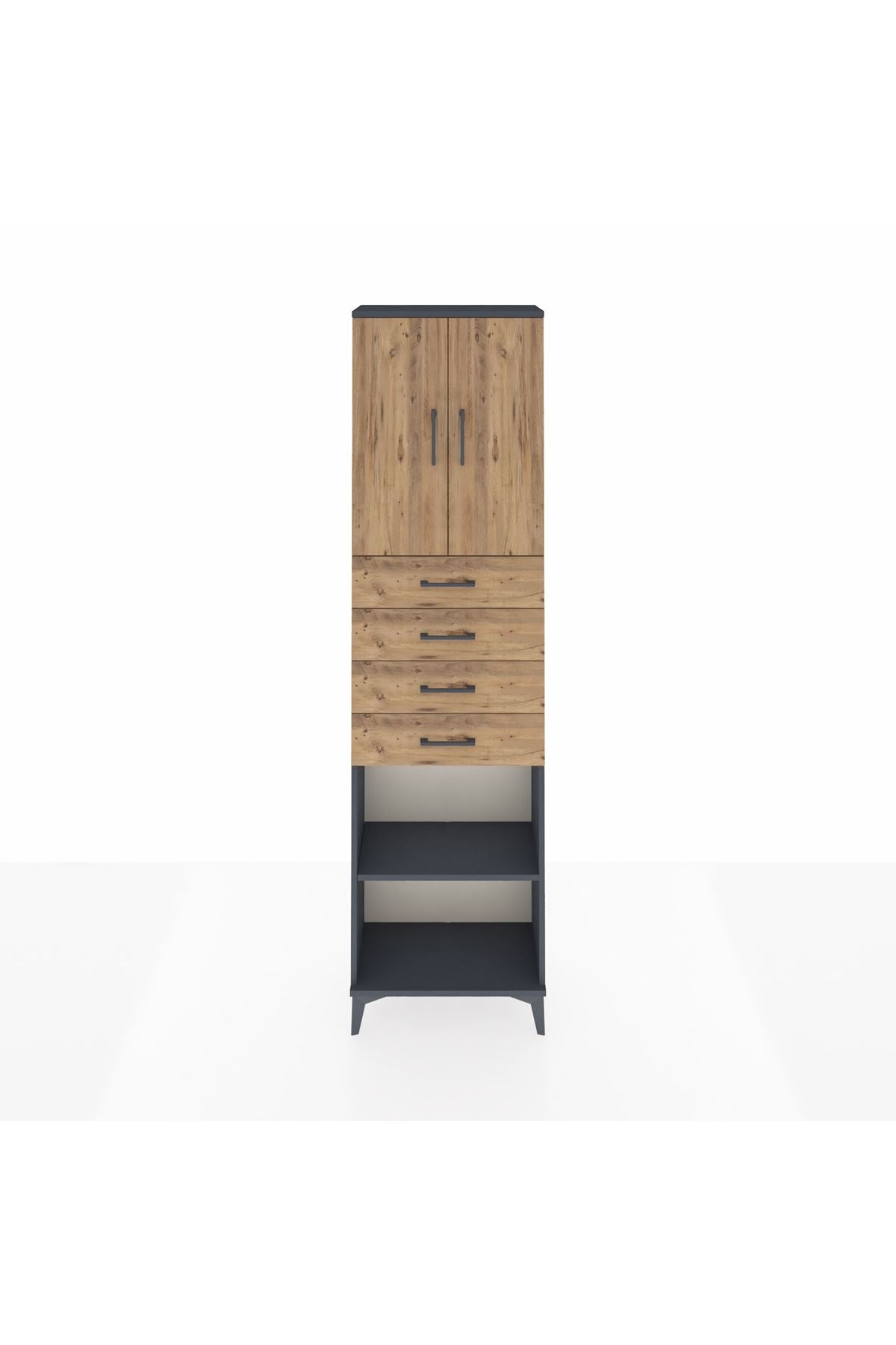 Arges Dolap 3 Raflı 4 Çekmeceli 2 Kapaklı 60x30x221 Antrasit-Çam