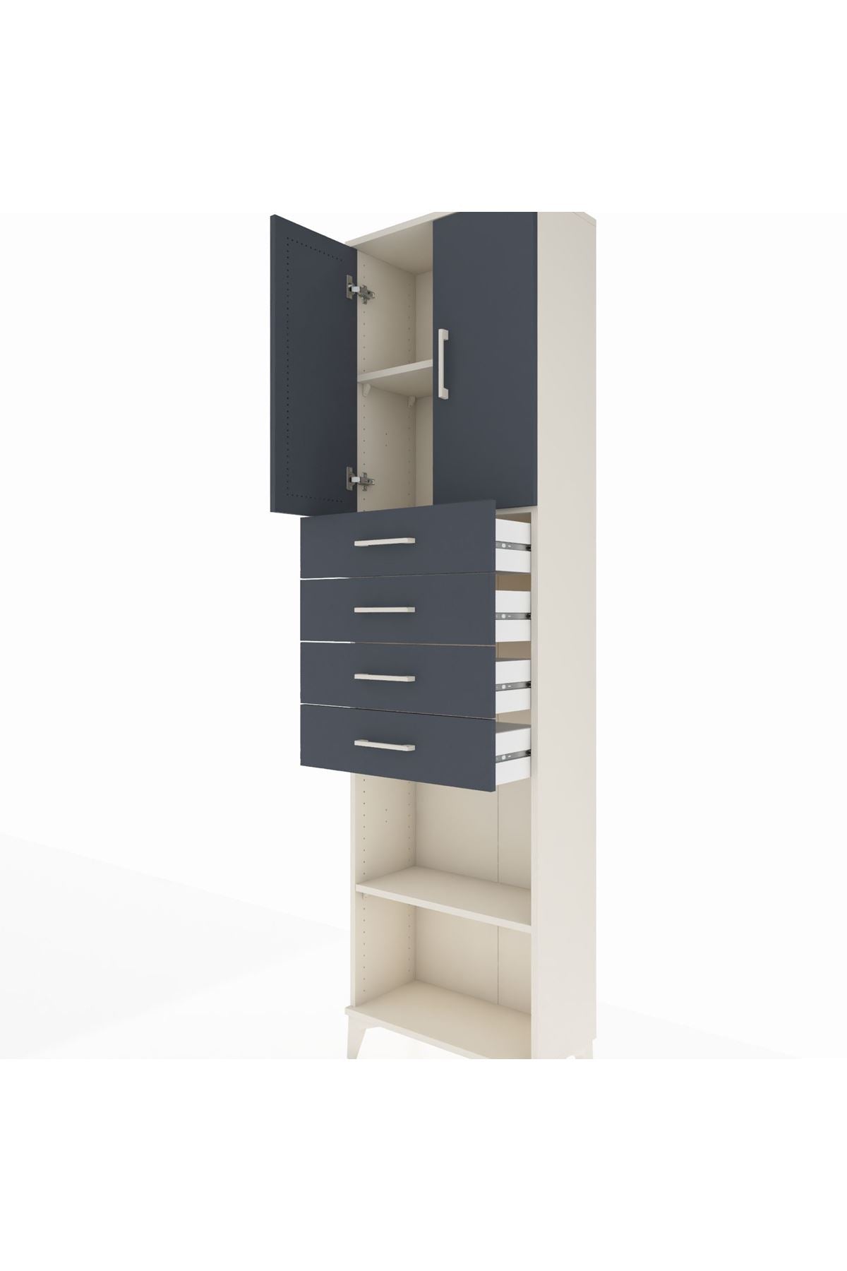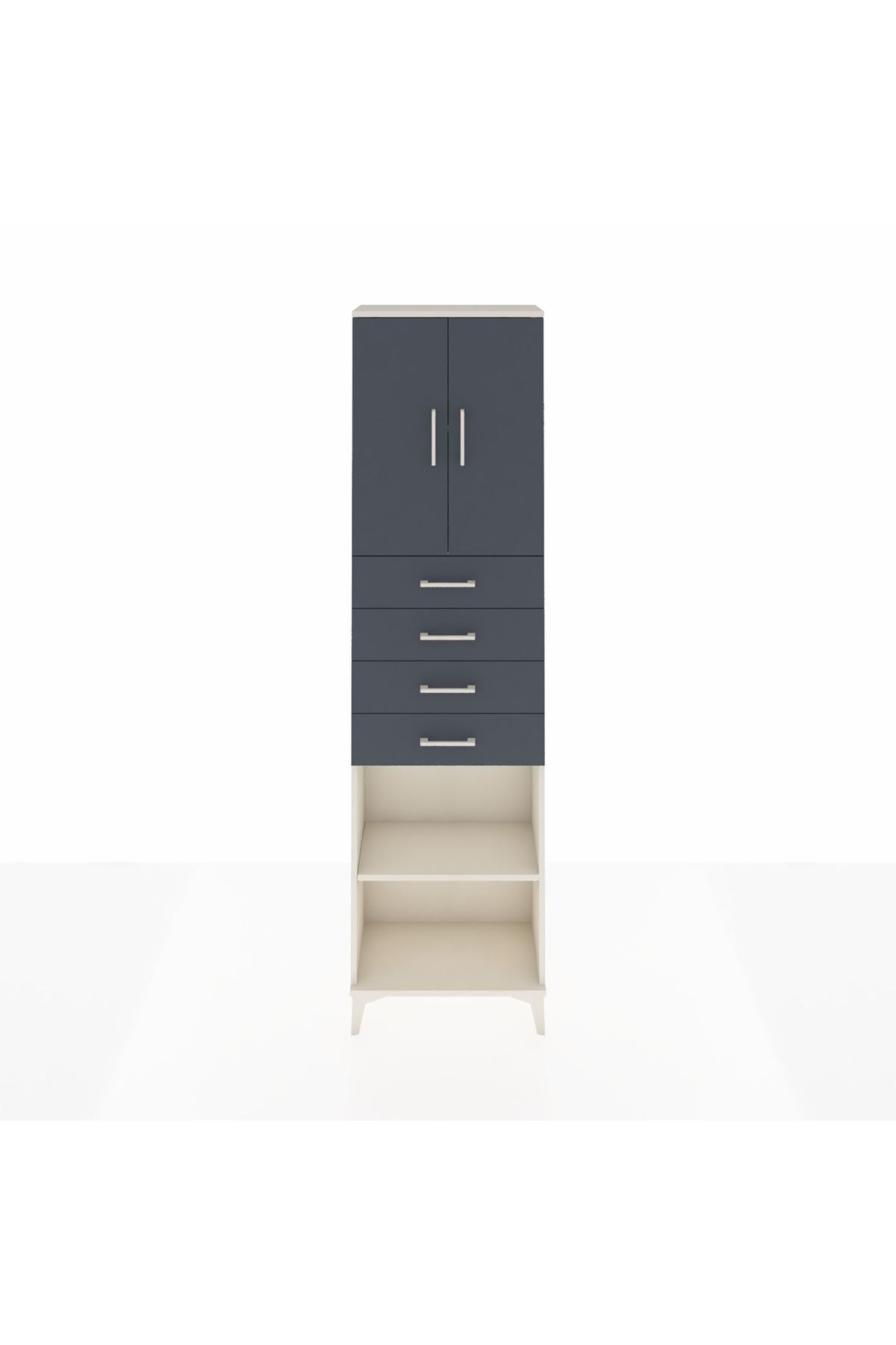 Arges Dolap 3 Raflı 4 Çekmeceli 2 Kapaklı 60x30x221 Aytaşı-Antrasit