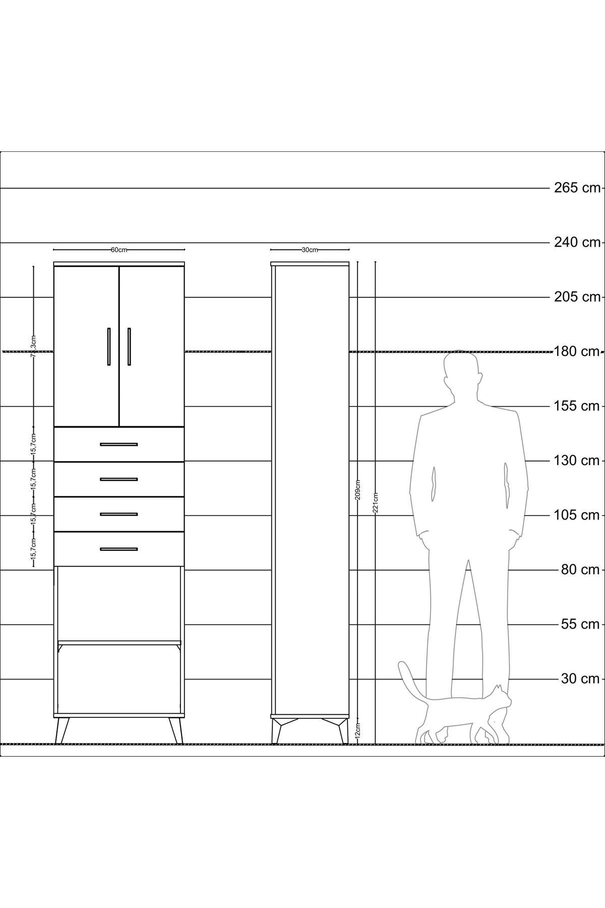 Arges Dolap 3 Raflı 4 Çekmeceli 2 Kapaklı 60x30x221 Aytaşı-Çam