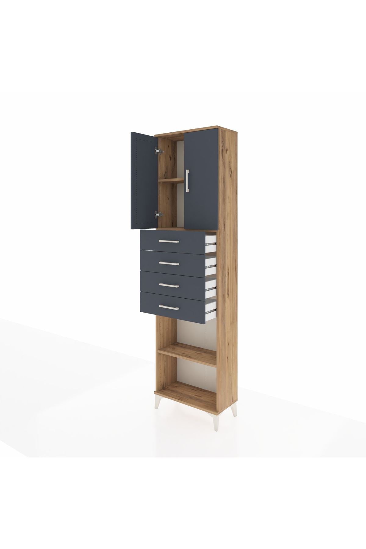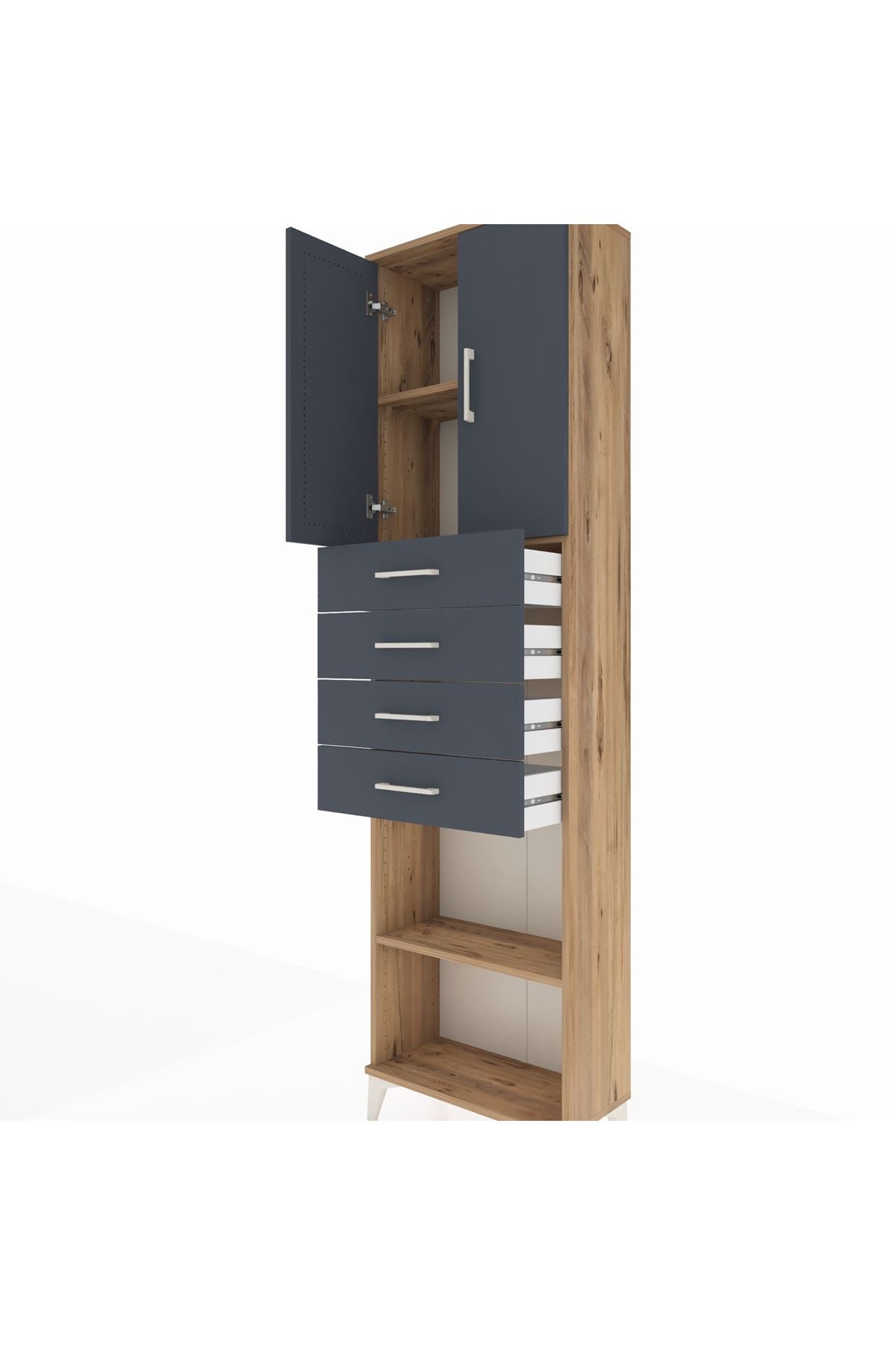 Arges Dolap 3 Raflı 4 Çekmeceli 2 Kapaklı 60x30x221 Çam-Antrasit