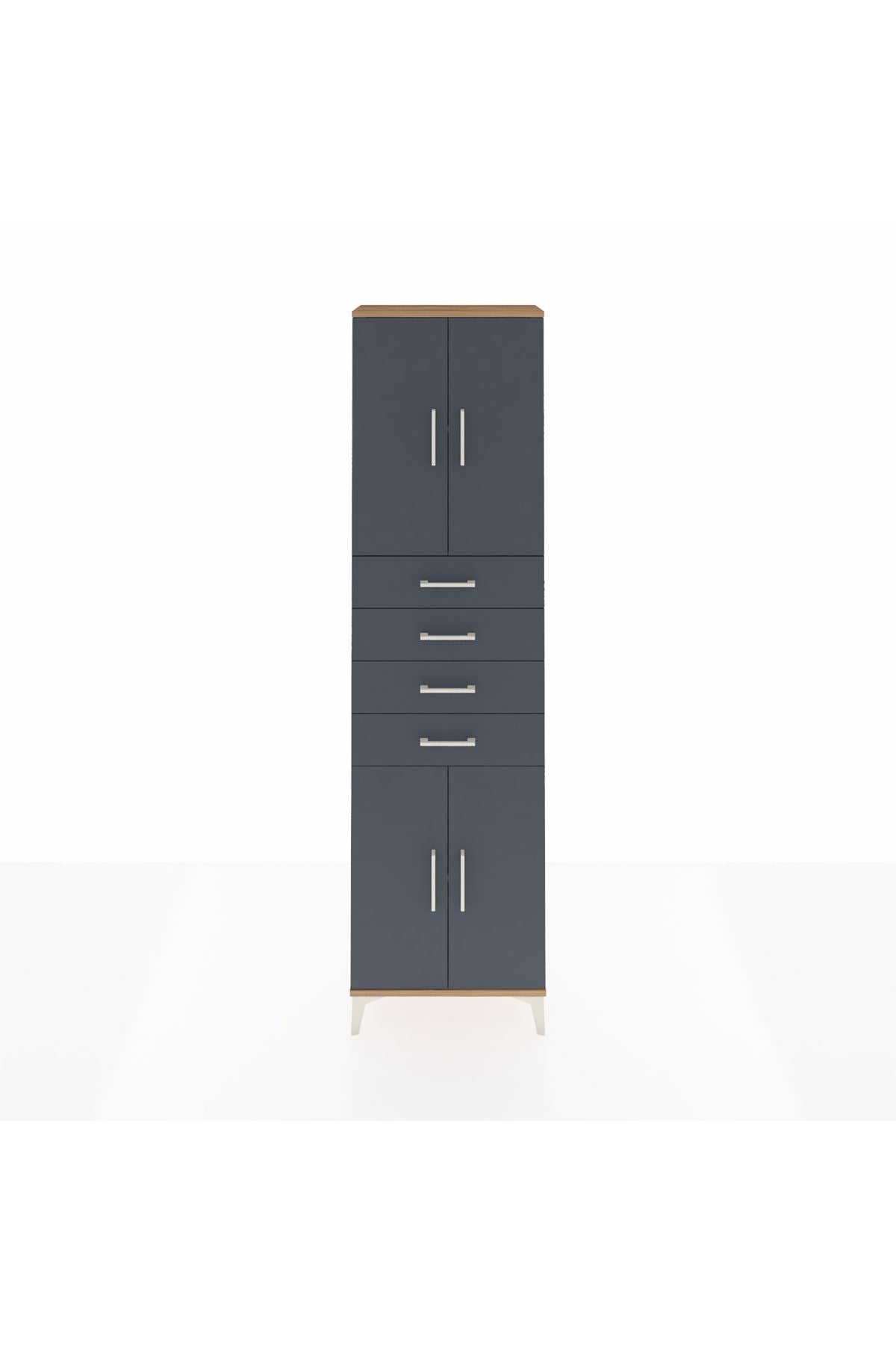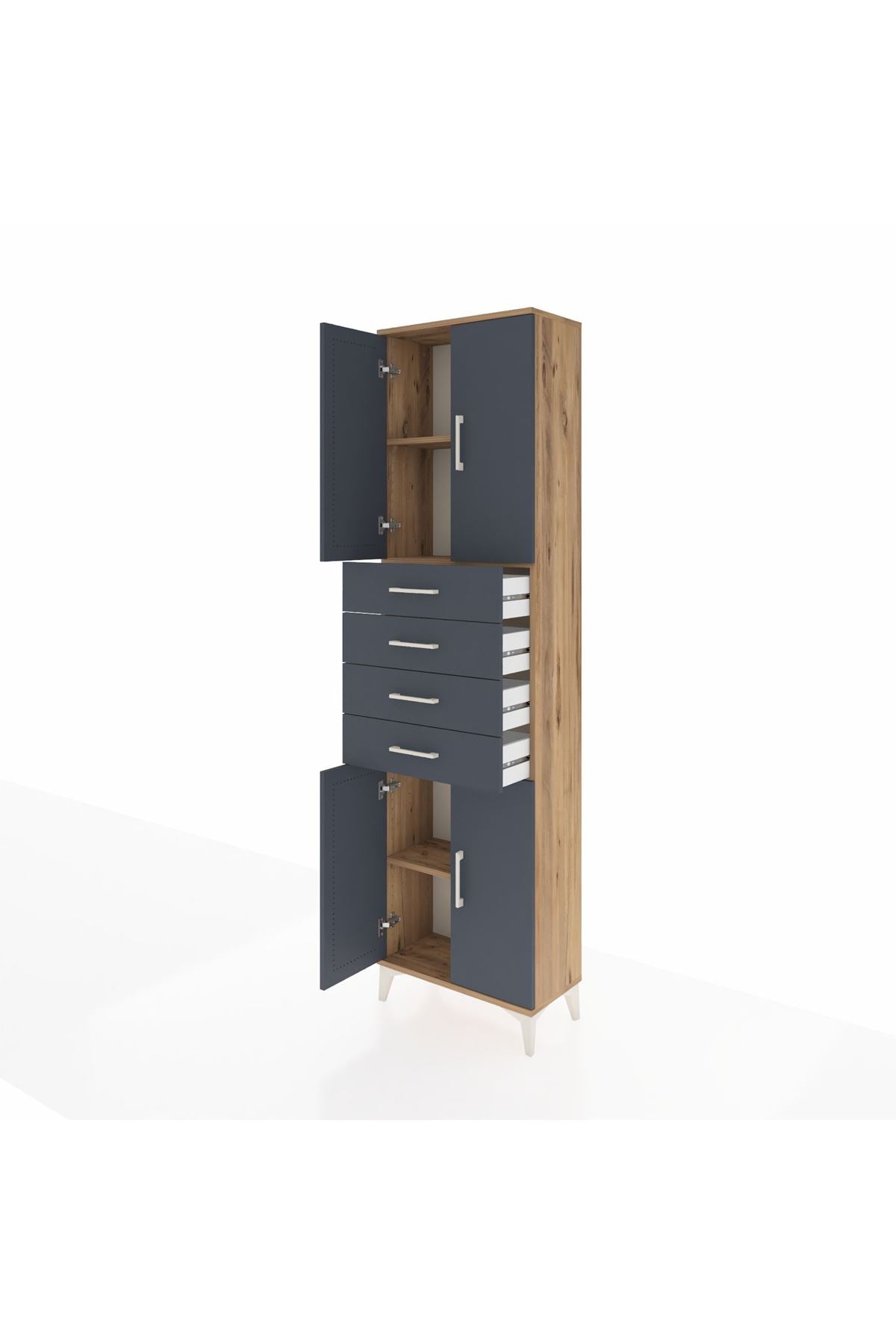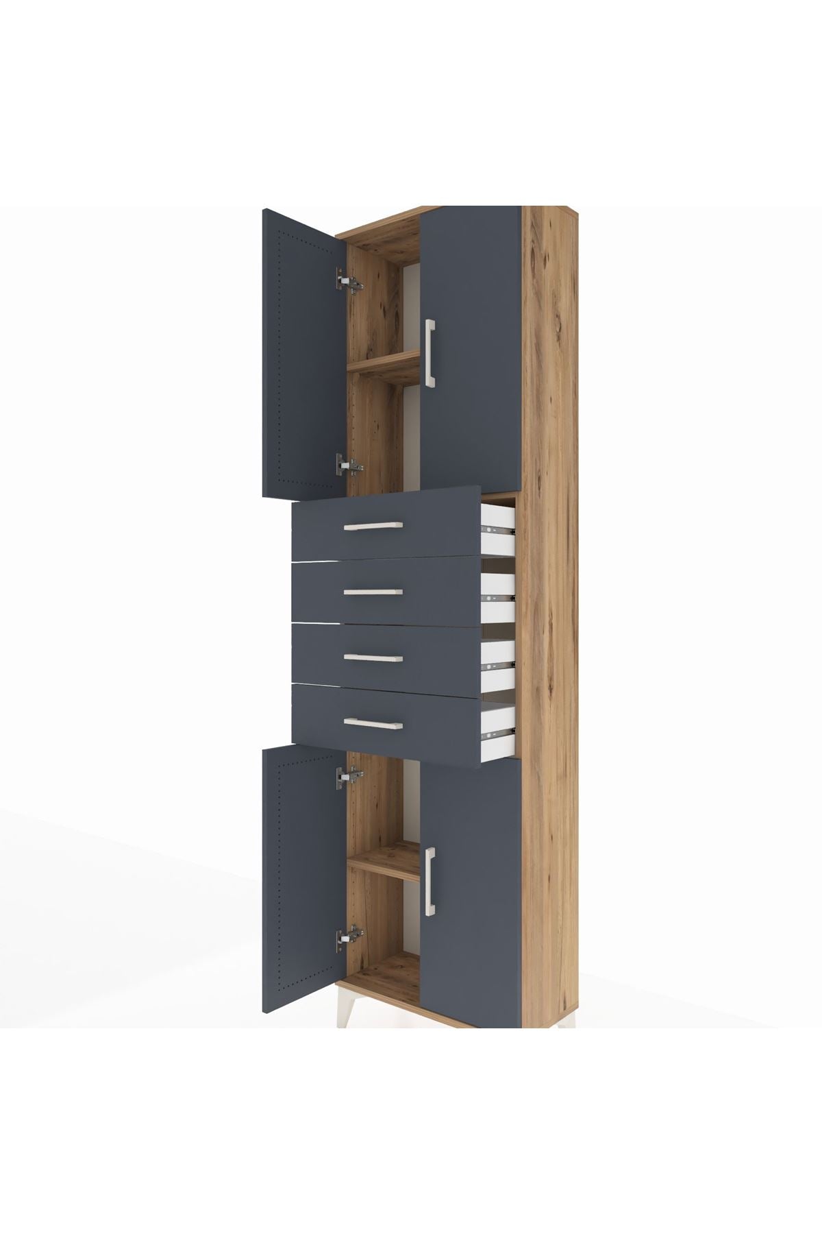 Arges Dolap 3 Raflı 4 Çekmeceli 4 Kapaklı 60x30x221 Çam-Antrasit