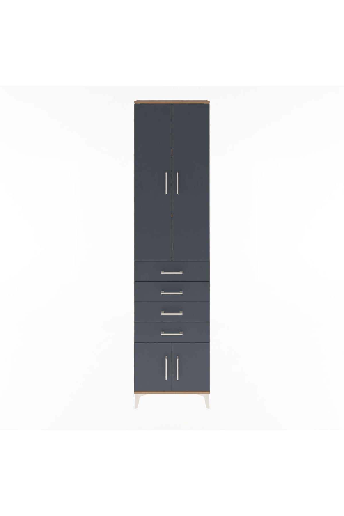 Arges Dolap 3 Raflı 4 Çekmeceli 4 Kapaklı 60x30x243 Çam-Antrasit