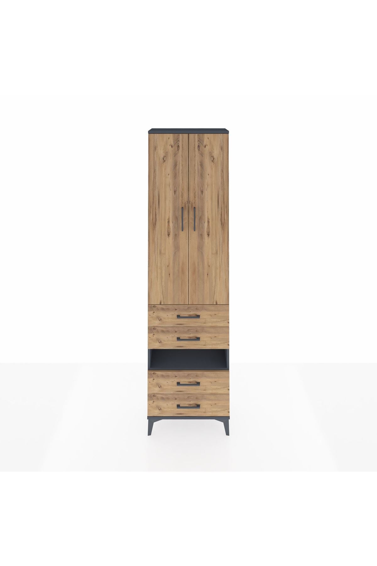 Arges Dolap 3 Raflı 4 Çekmeceli Tek Askılı 60x30x221 Antrasit-Çam