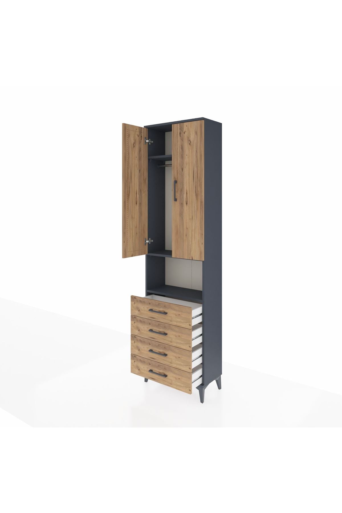 Arges Dolap 3 Raflı 4 Çekmeceli Tek Askılı 60x30x221 Antrasit-Çam