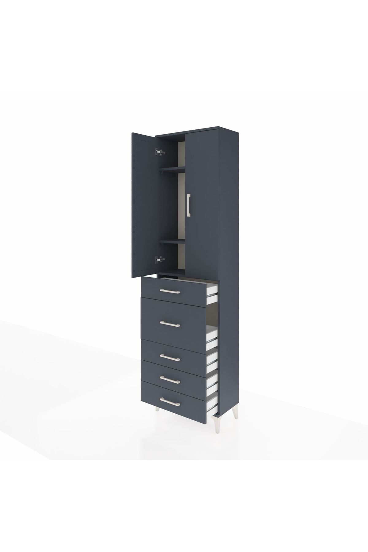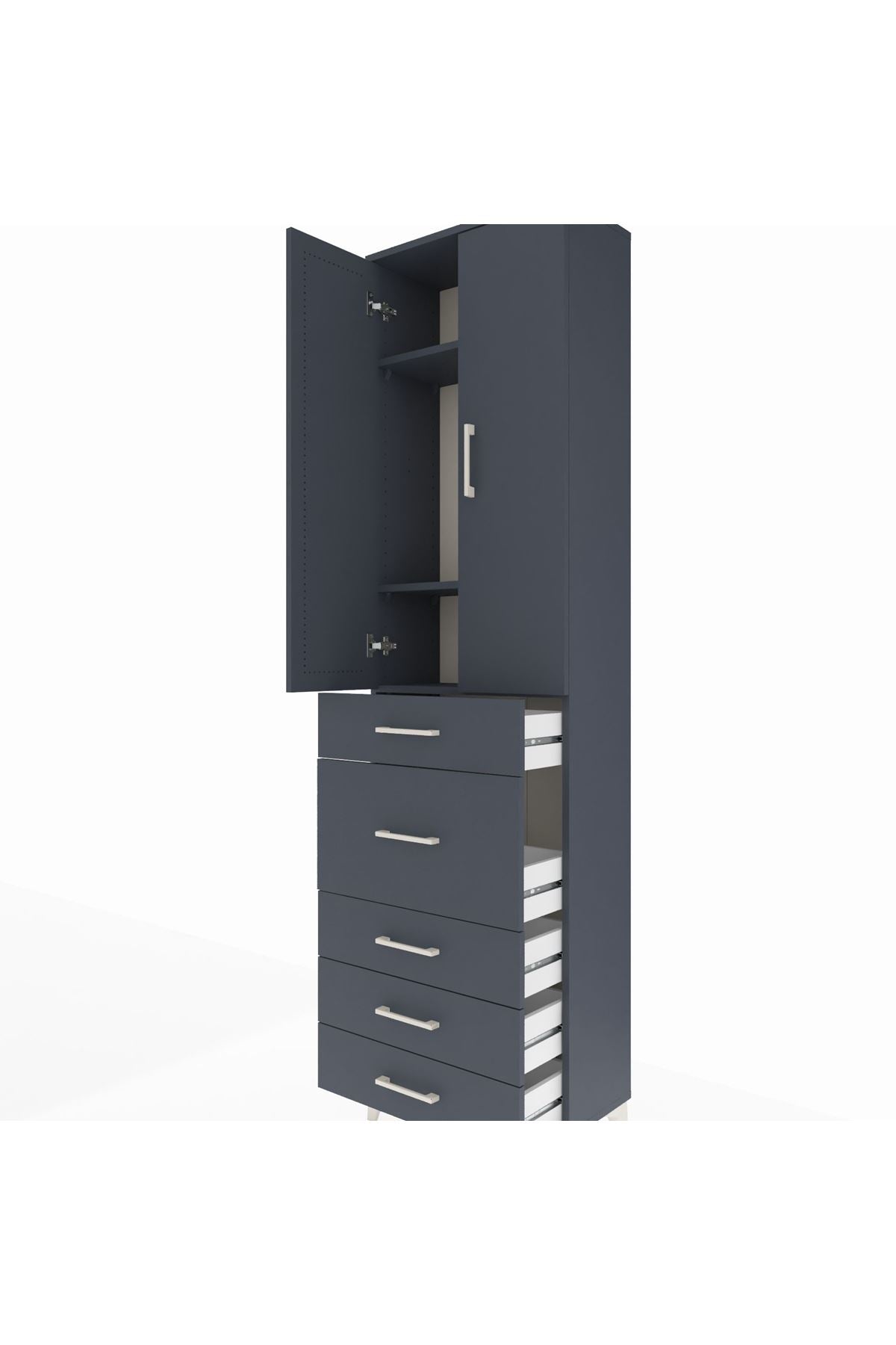 Arges Dolap 3 Raflı 5 Çekmeceli 2 Kapaklı 60x30x221 Antrasit-Antrasit