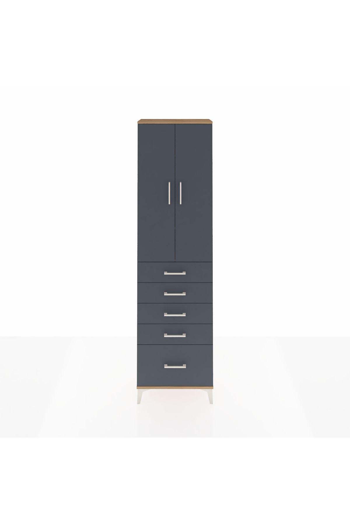 Arges Dolap 3 Raflı 5 Çekmeceli 2 Kapaklı 60x30x221 Çam-Antrasit