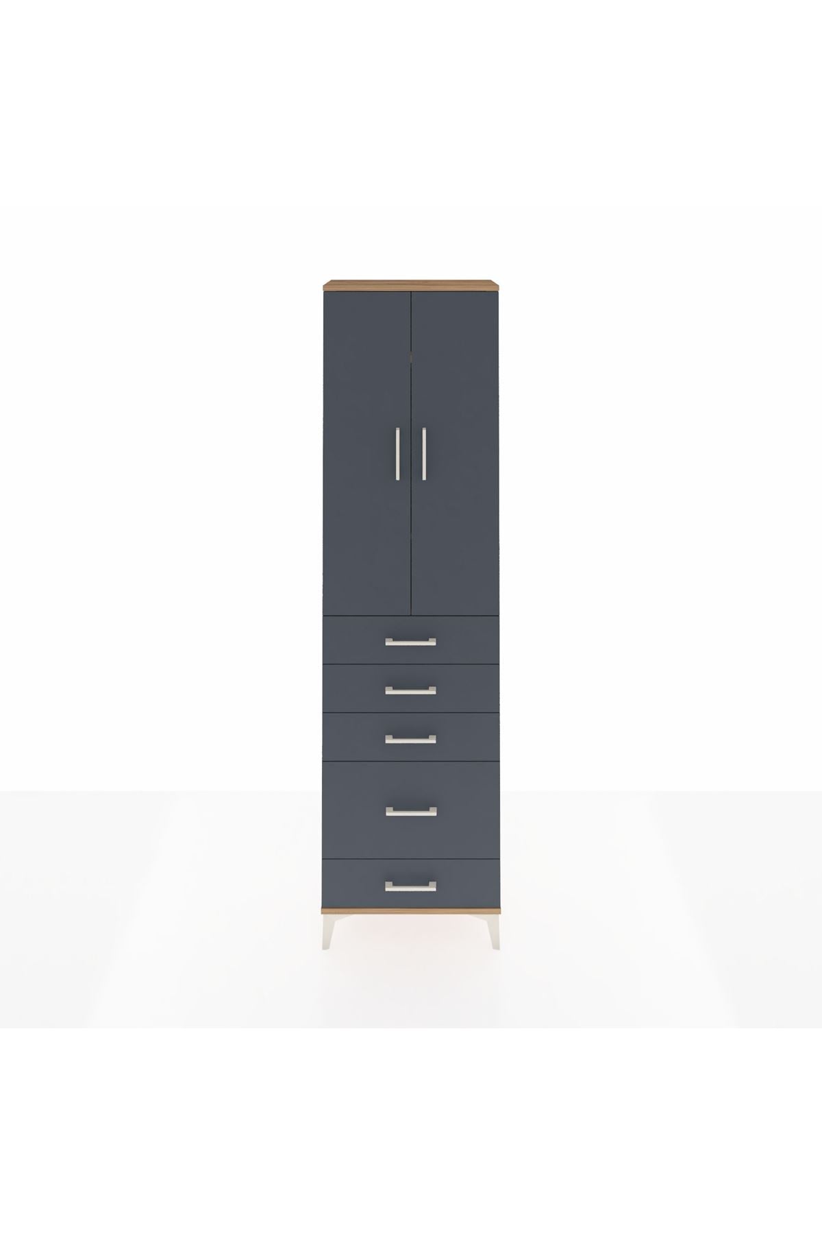 Arges Dolap 3 Raflı 5 Çekmeceli 2 Kapaklı 60x30x221 Çam-Antrasit