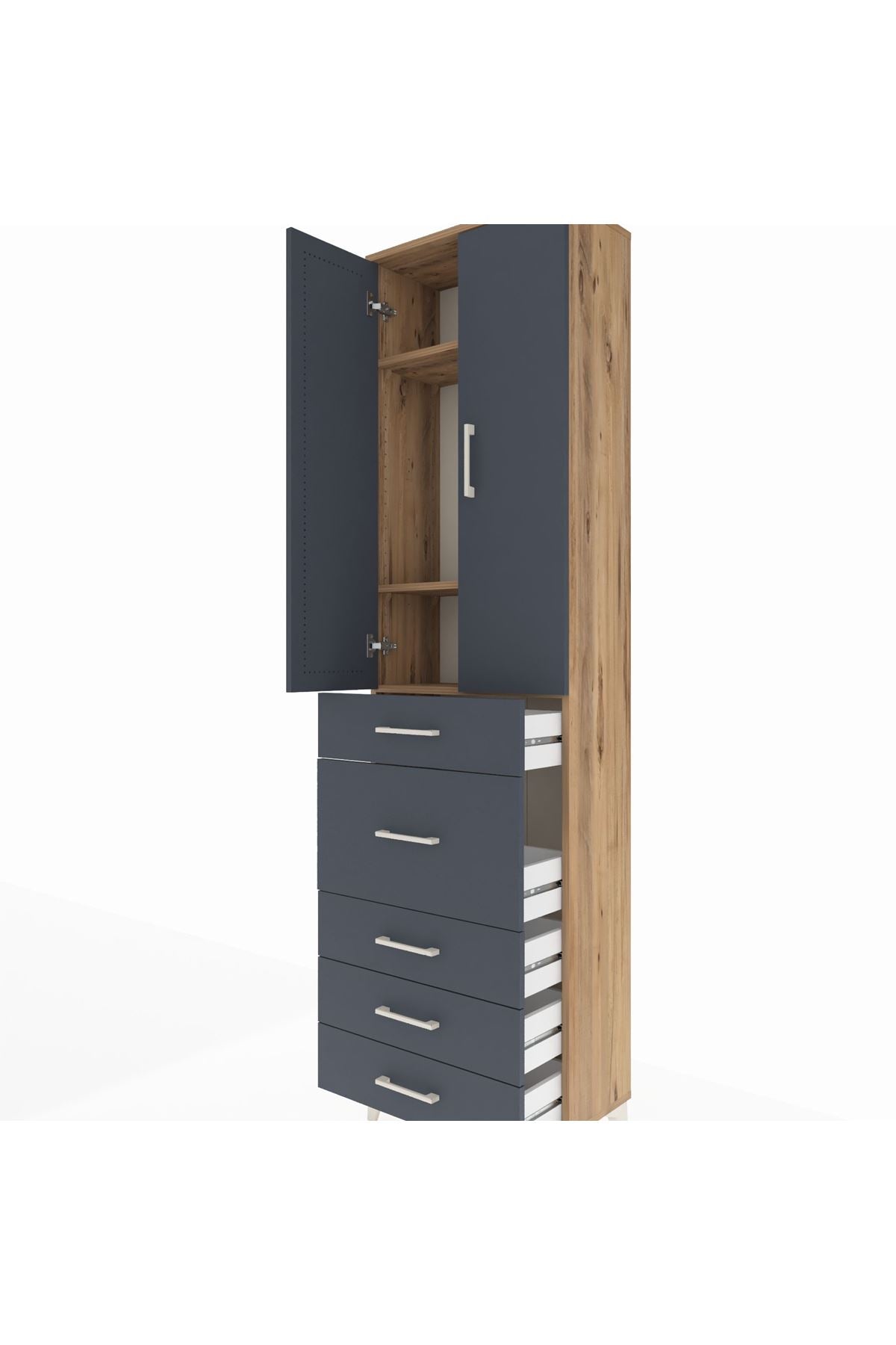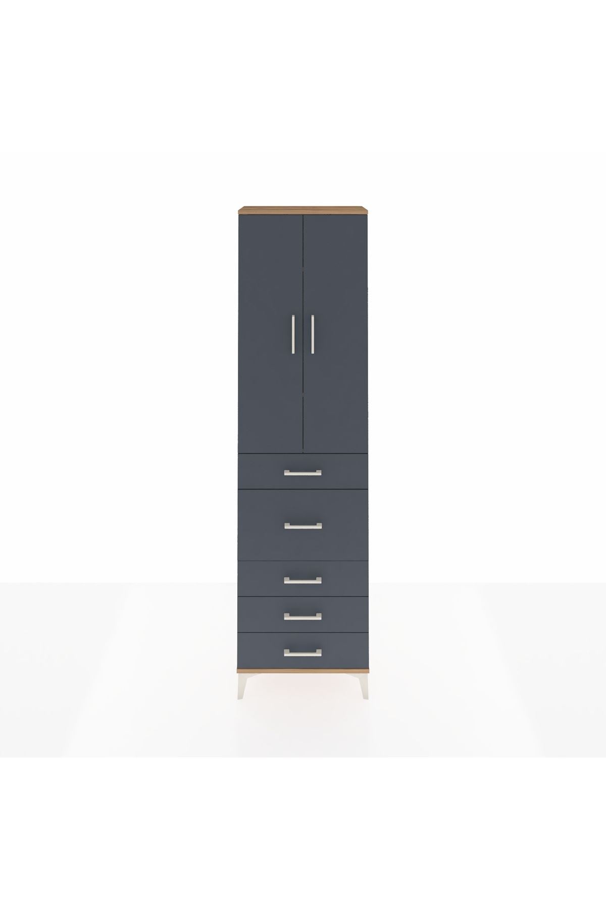 Arges Dolap 3 Raflı 5 Çekmeceli 2 Kapaklı 60x30x221 Çam-Antrasit