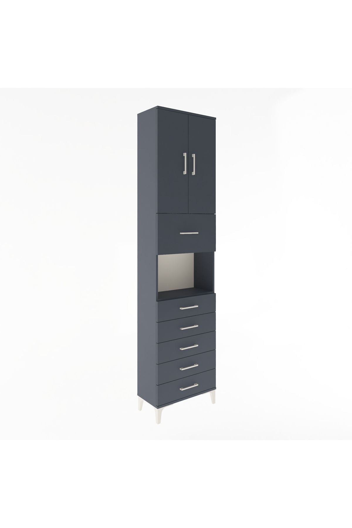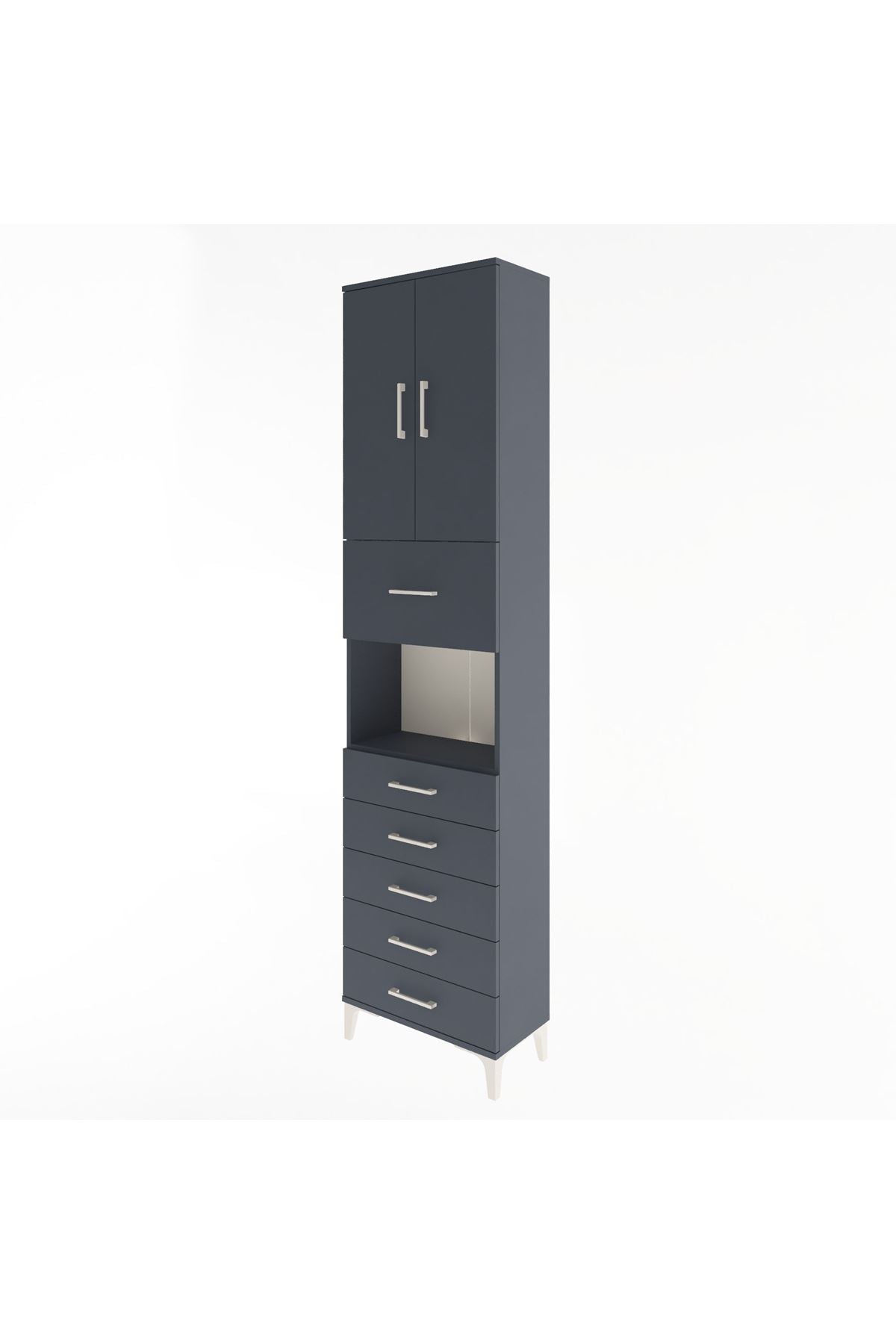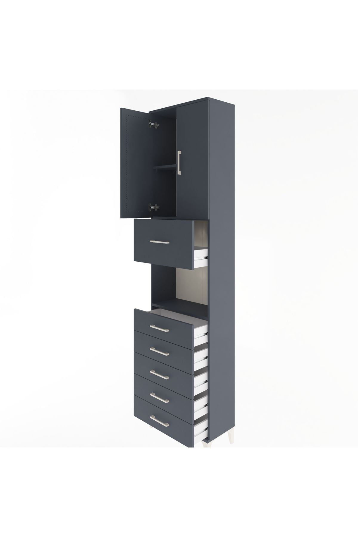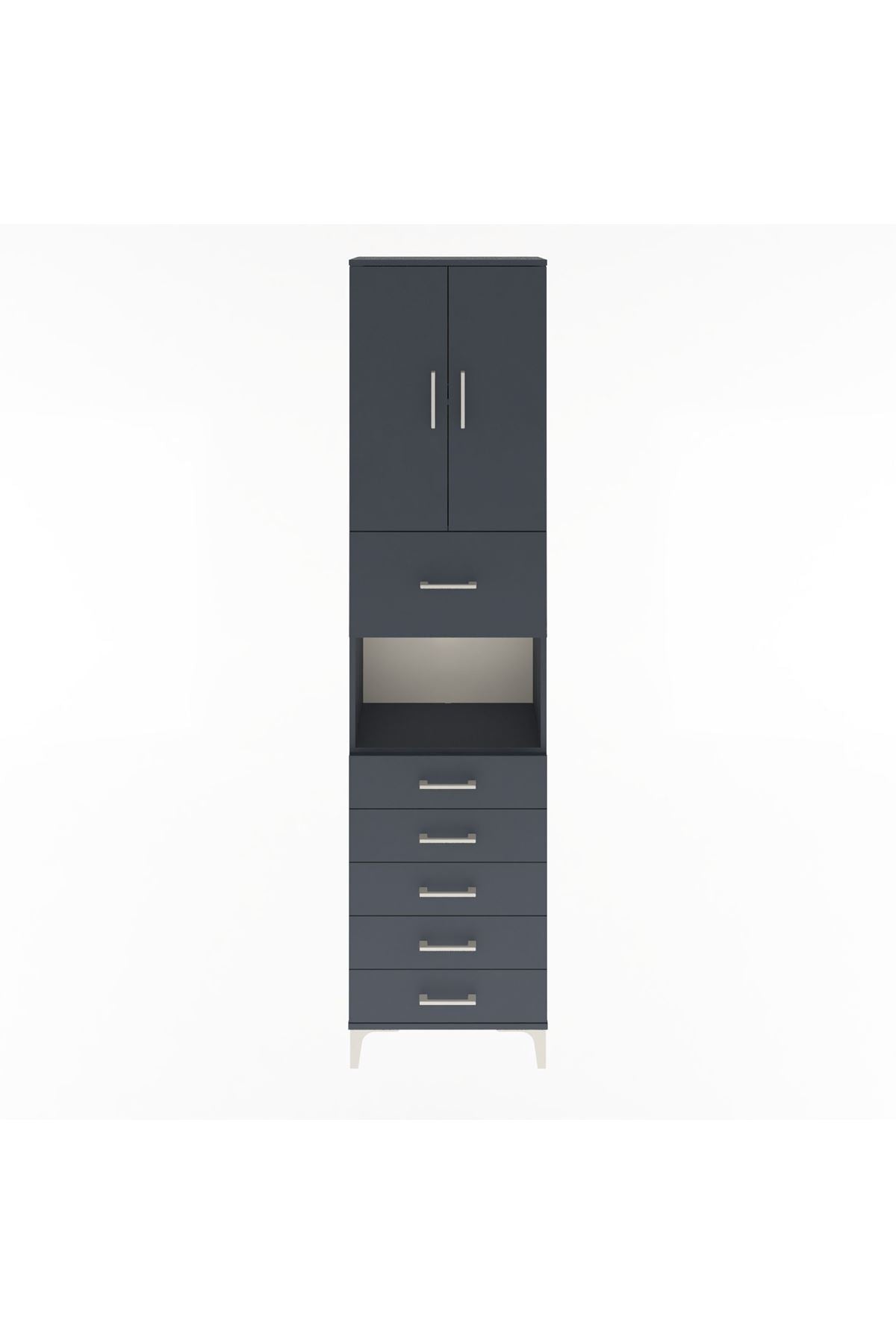 Arges Dolap 3 Raflı 6 Çekmeceli 2 Kapaklı 60x30x243 Antrasit-Antrasit