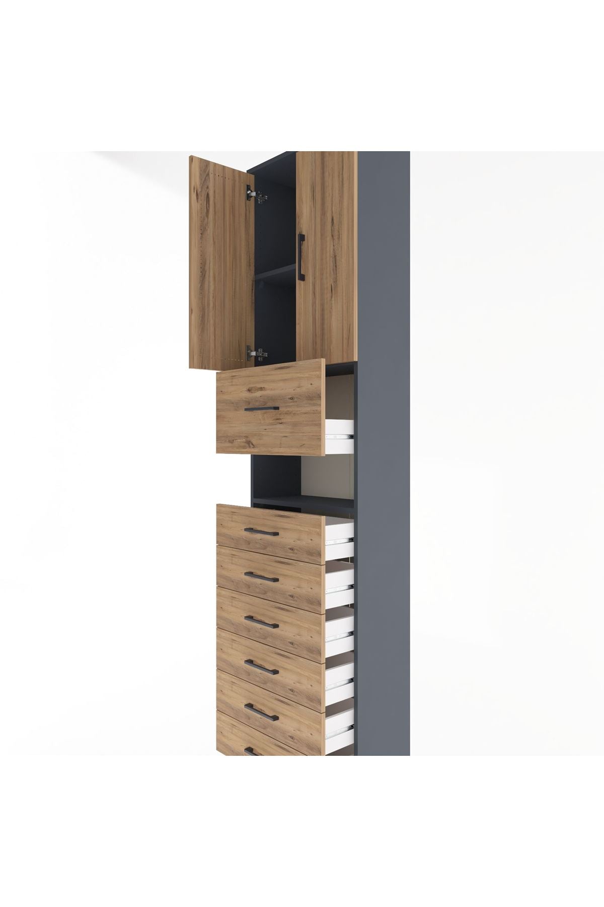 Arges Dolap 3 Raflı 6 Çekmeceli 2 Kapaklı 60x30x243 Antrasit-Çam
