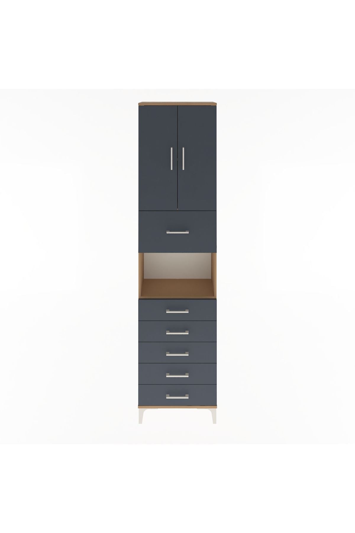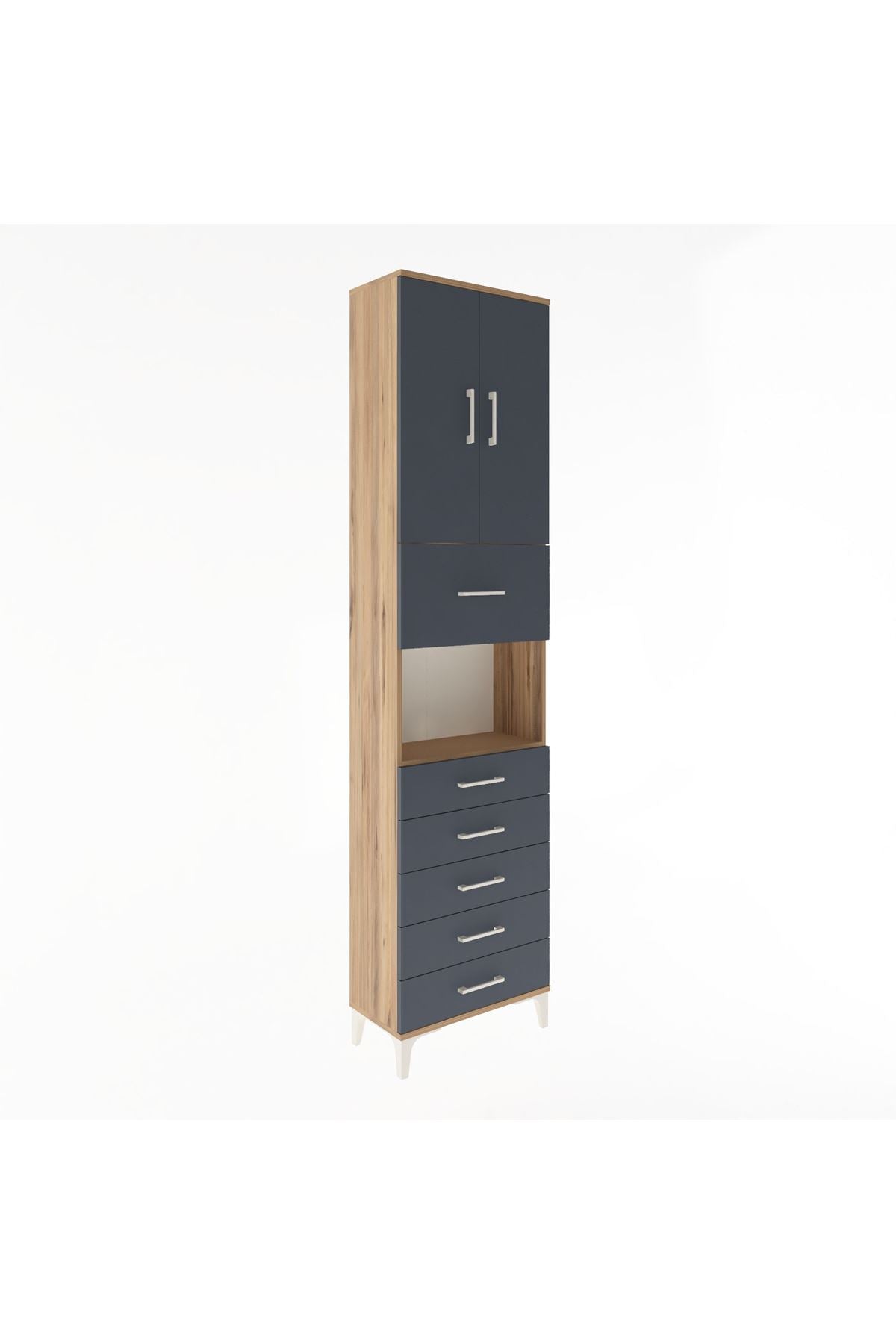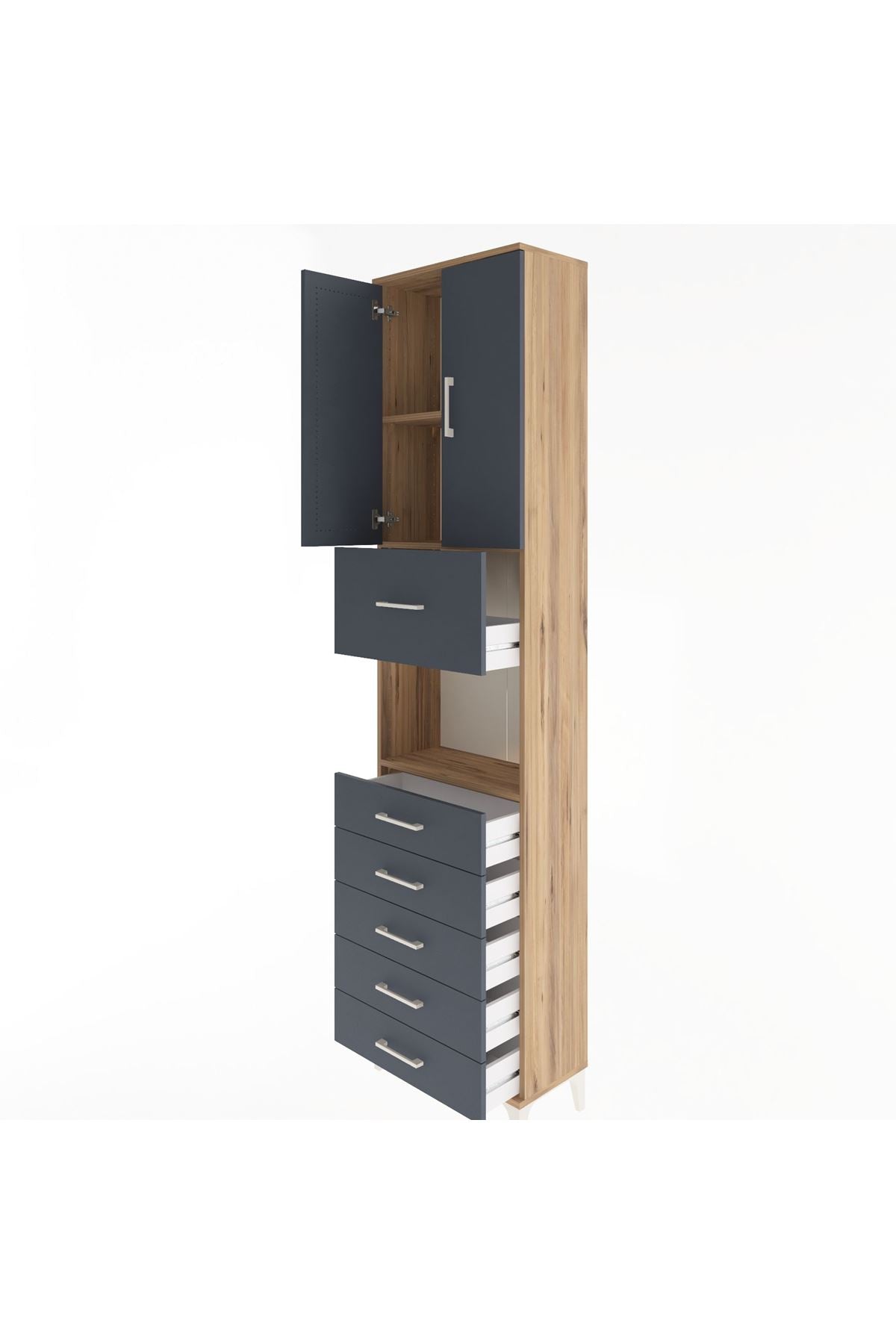 Arges Dolap 3 Raflı 6 Çekmeceli 2 Kapaklı 60x30x243 Çam-Antrasit