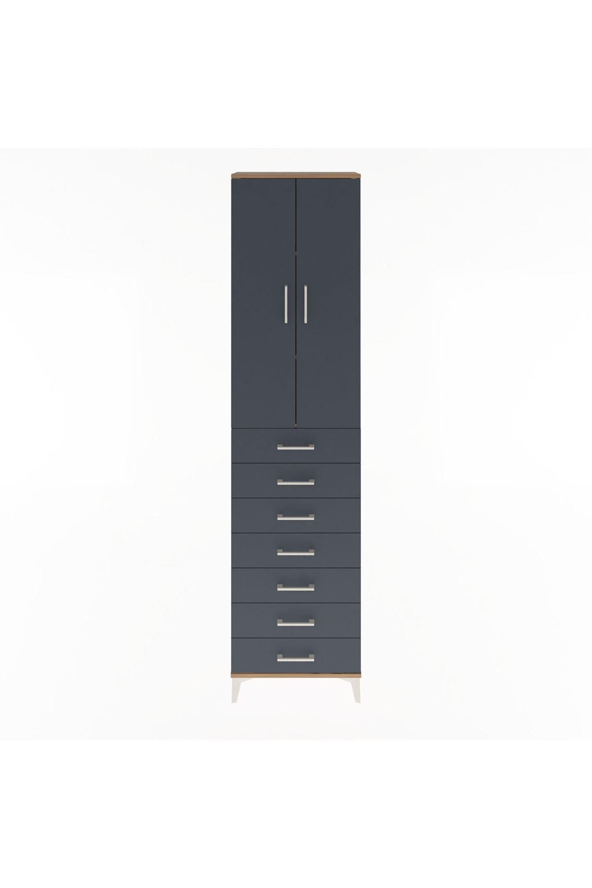 Arges Dolap 3 Raflı 7 Çekmeceli 2 Kapaklı 60x30x243 Çam-Antrasit