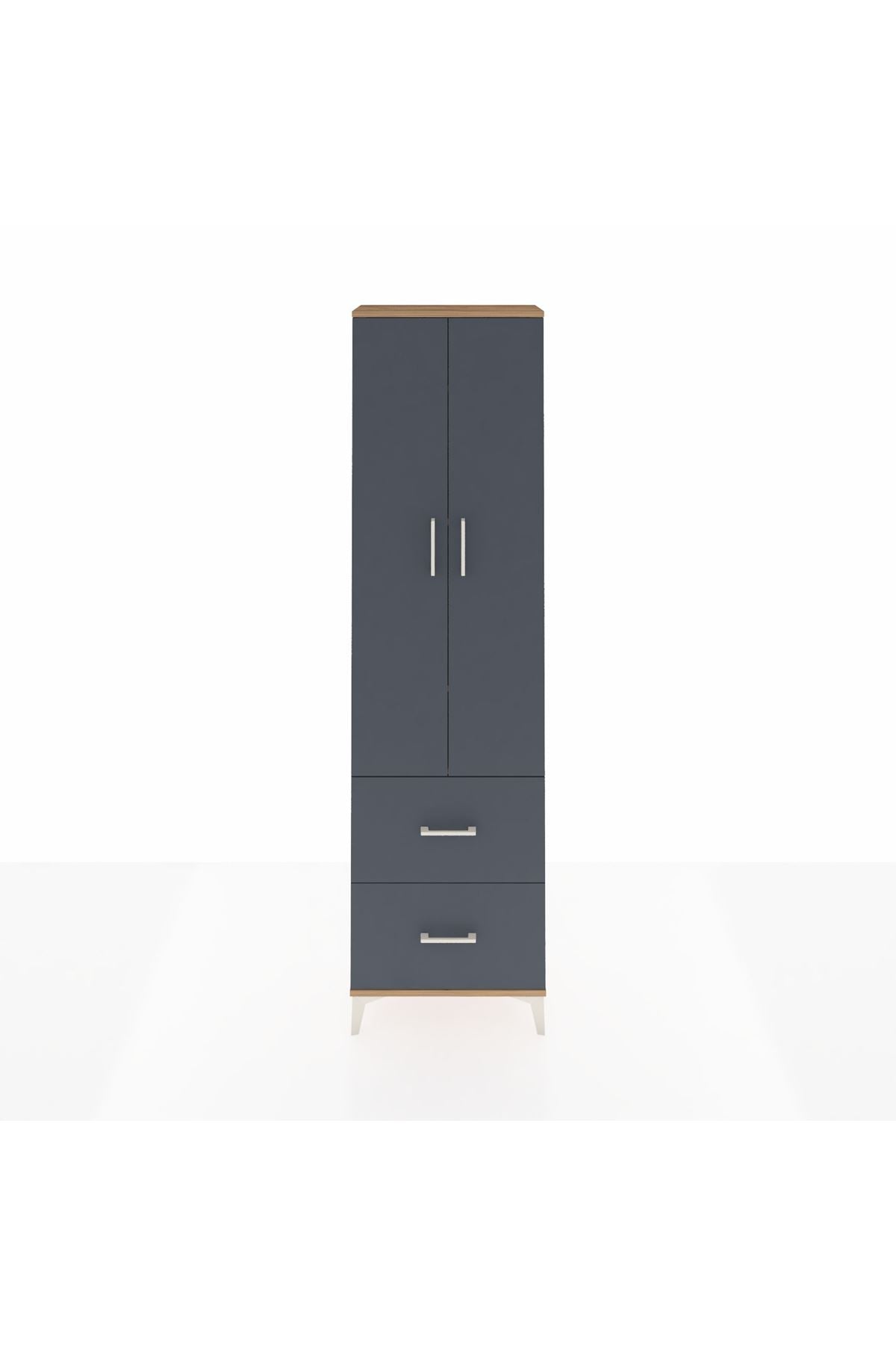 Arges Dolap 4 Raflı 2 Çekmeceli 2 Kapaklı 60x30x221 Çam-Antrasit