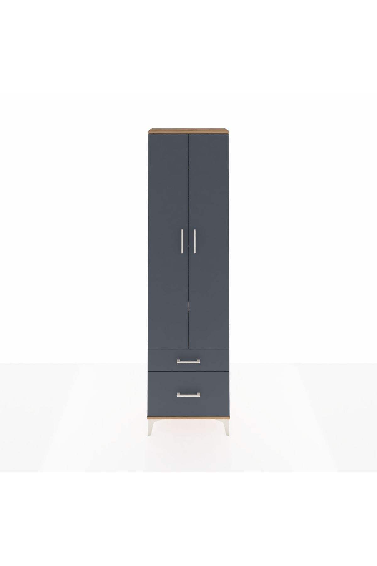Arges Dolap 4 Raflı 2 Çekmeceli 2 Kapaklı 60x30x221 Çam-Antrasit