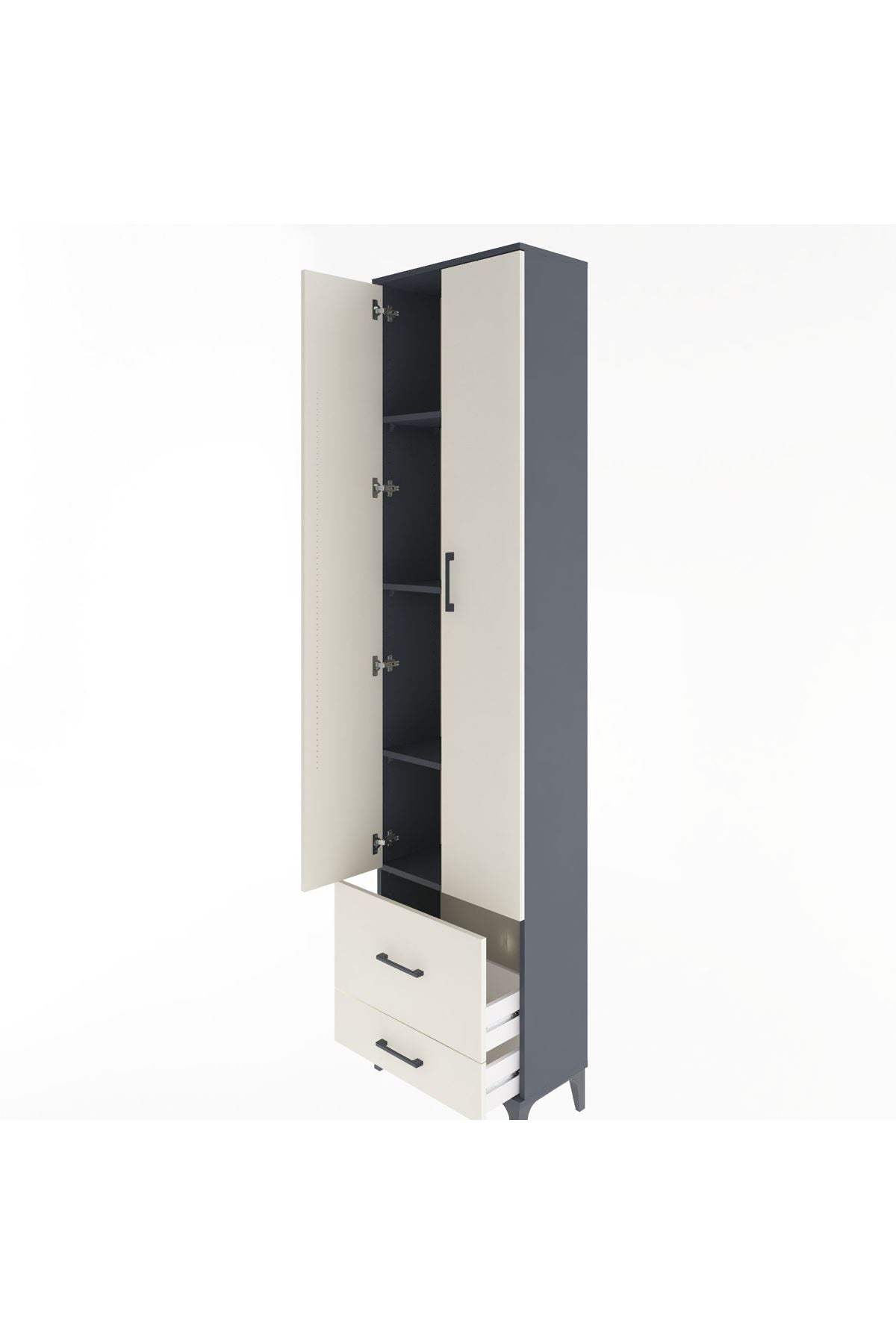 Arges Dolap 4 Raflı 2 Çekmeceli 2 Kapaklı 60x30x243 Antrasit-Aytaşı