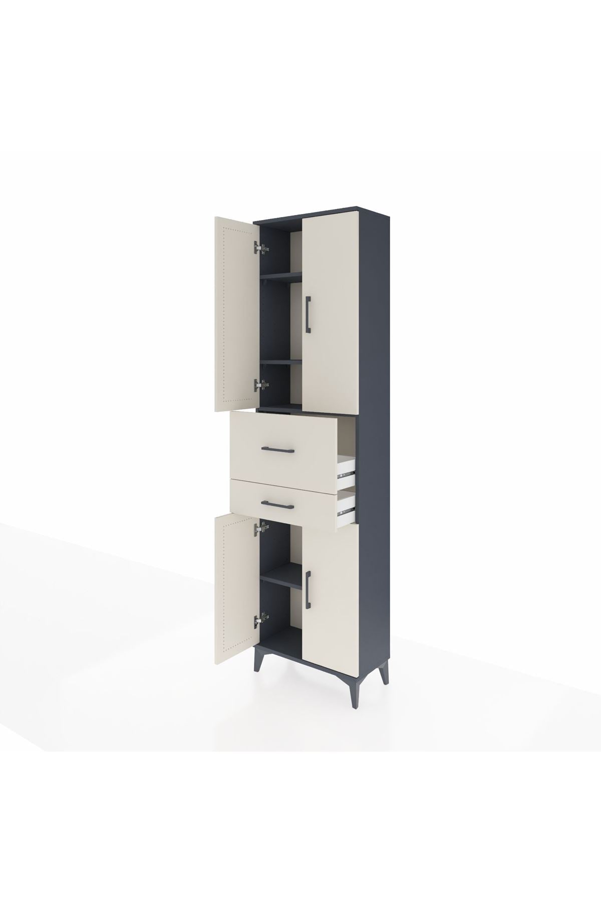 Arges Dolap 4 Raflı 2 Çekmeceli 4 Kapaklı 60x30x221 Antrasit-Aytaşı