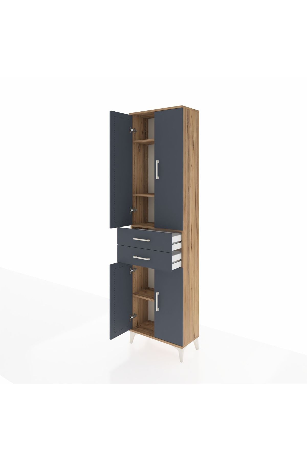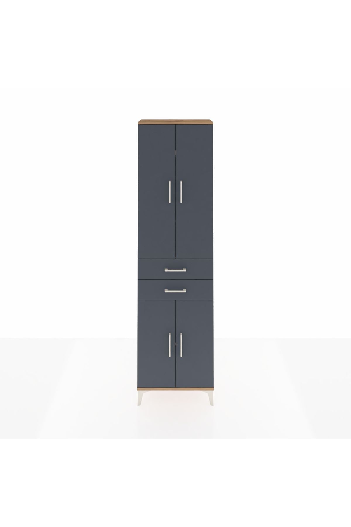 Arges Dolap 4 Raflı 2 Çekmeceli 4 Kapaklı 60x30x221 Çam-Antrasit