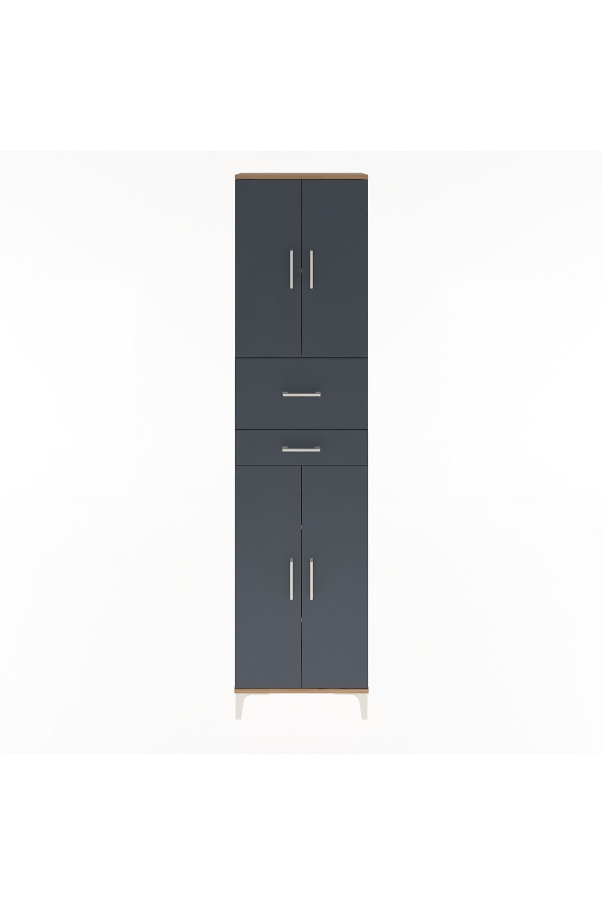 Arges Dolap 4 Raflı 2 Çekmeceli 4 Kapaklı 60x30x243 Çam-Antrasit