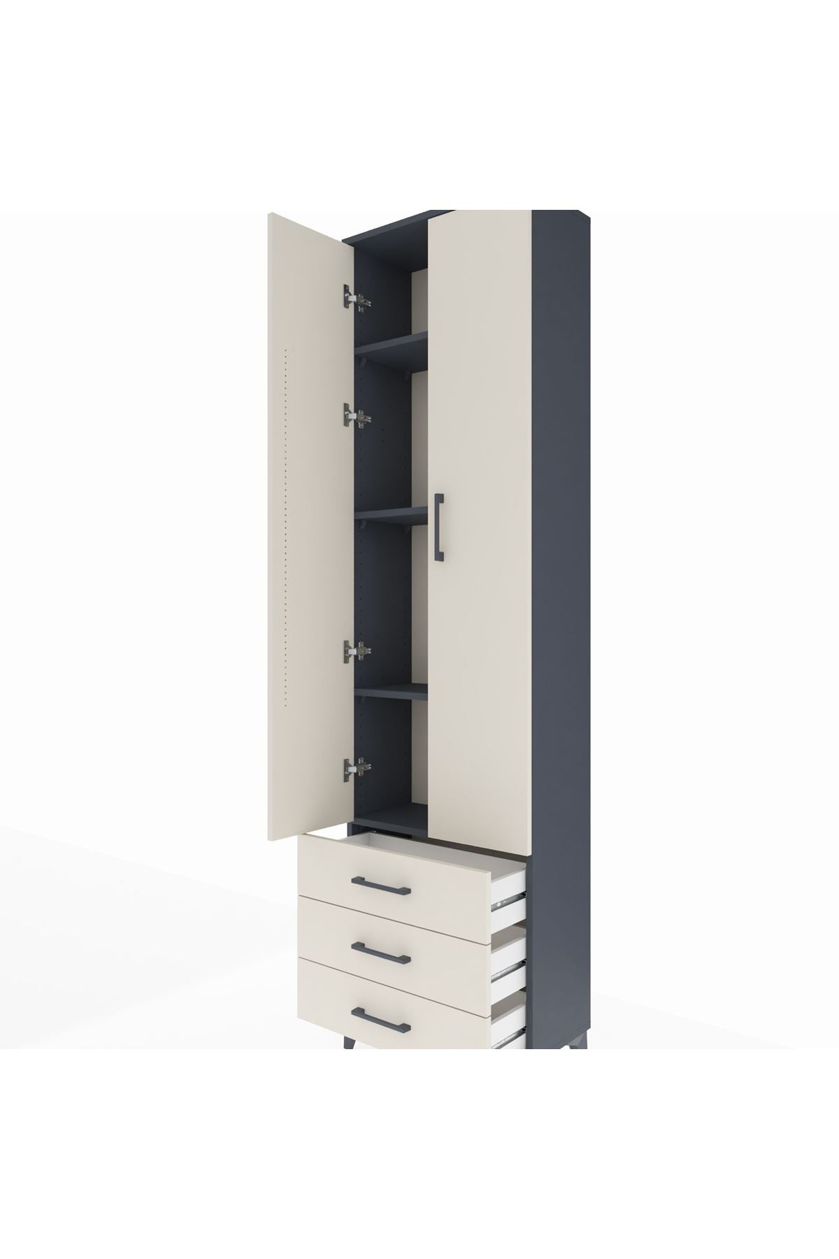 Arges Dolap 4 Raflı 3 Çekmeceli 2 Kapaklı 60x30x221 Antrasit-Aytaşı