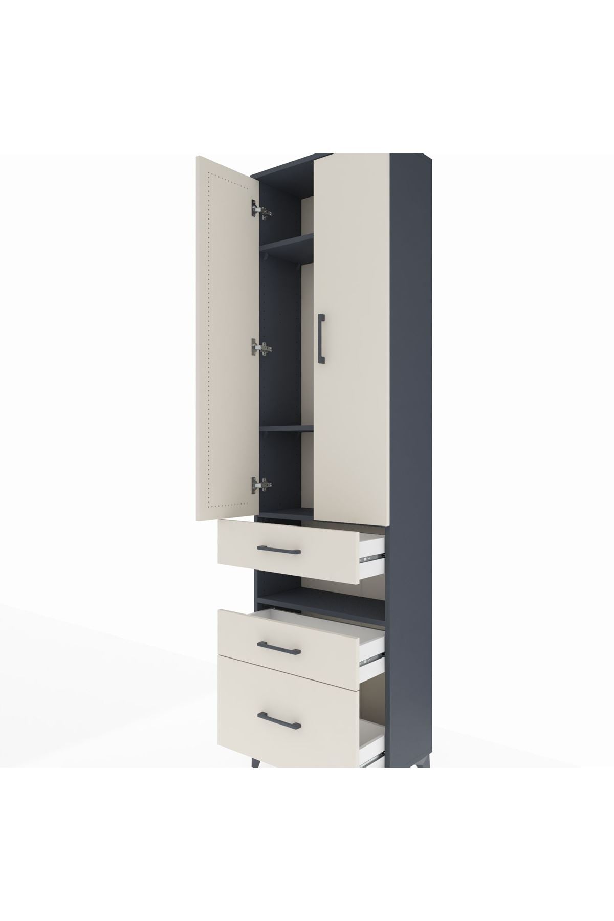 Arges Dolap 4 Raflı 3 Çekmeceli 2 Kapaklı 60x30x221 Antrasit-Aytaşı