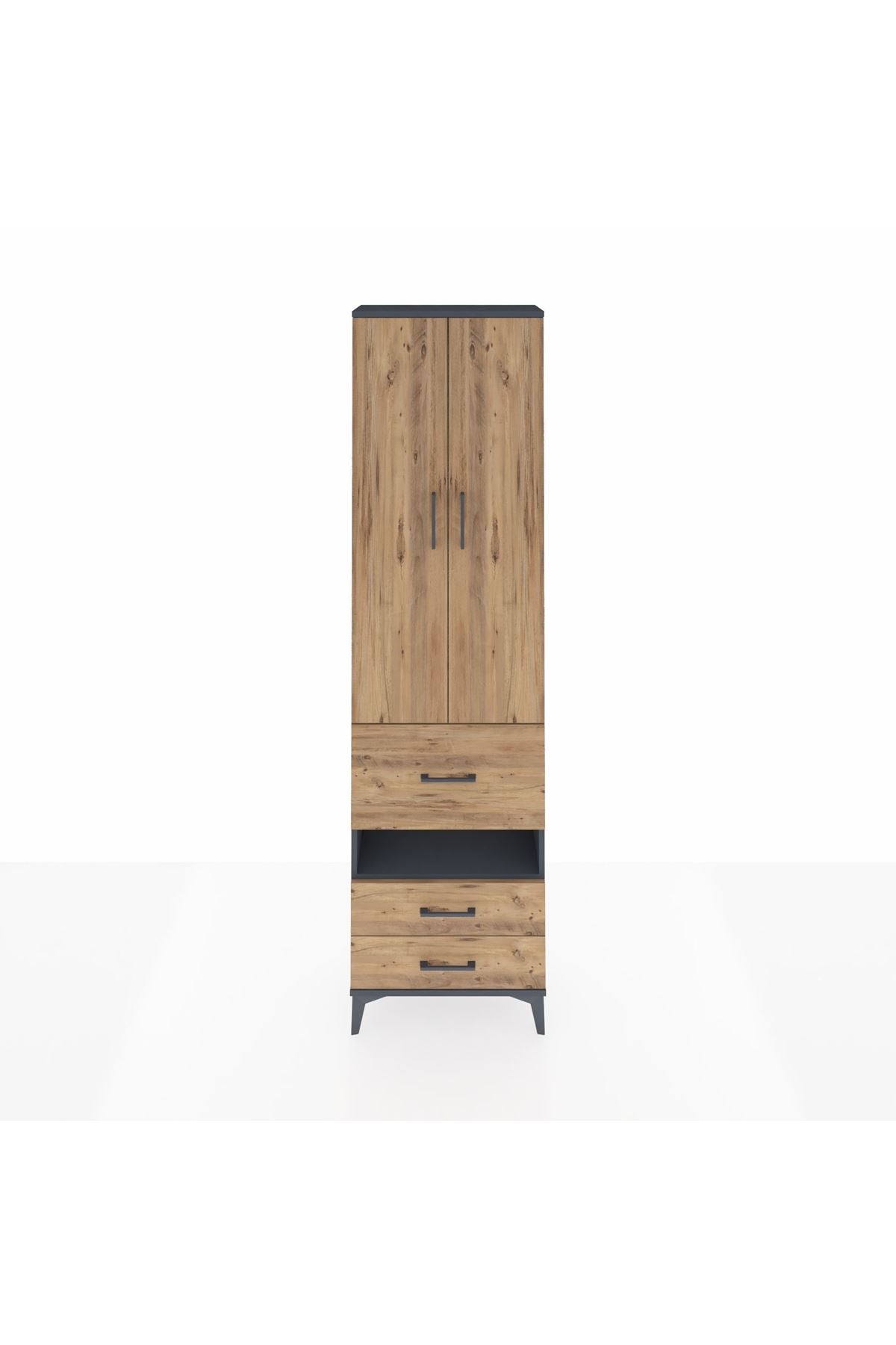 Arges Dolap 4 Raflı 3 Çekmeceli 2 Kapaklı 60x30x221 Antrasit-Çam