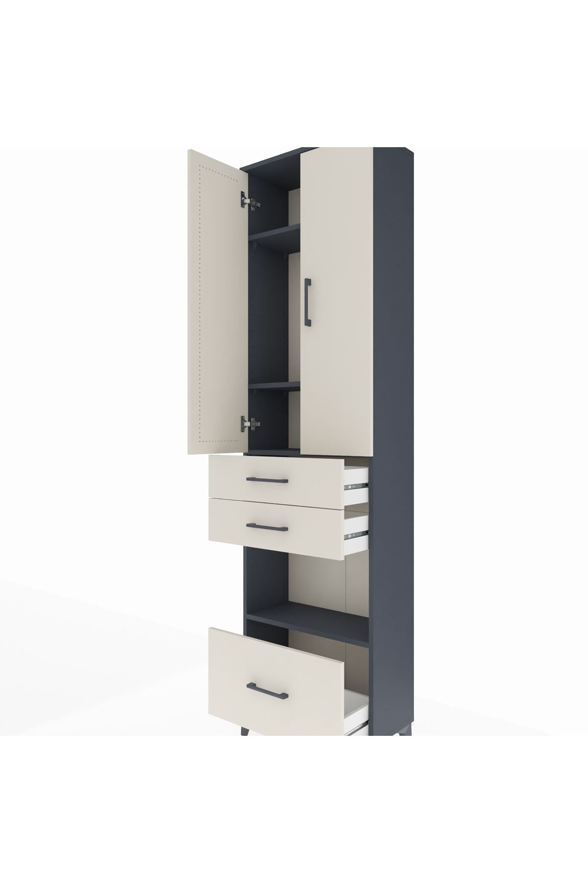 Arges Dolap 4 Raflı 3 Çekmeceli 2 Kapaklı 60x30x221 Antrasit-Aytaşı