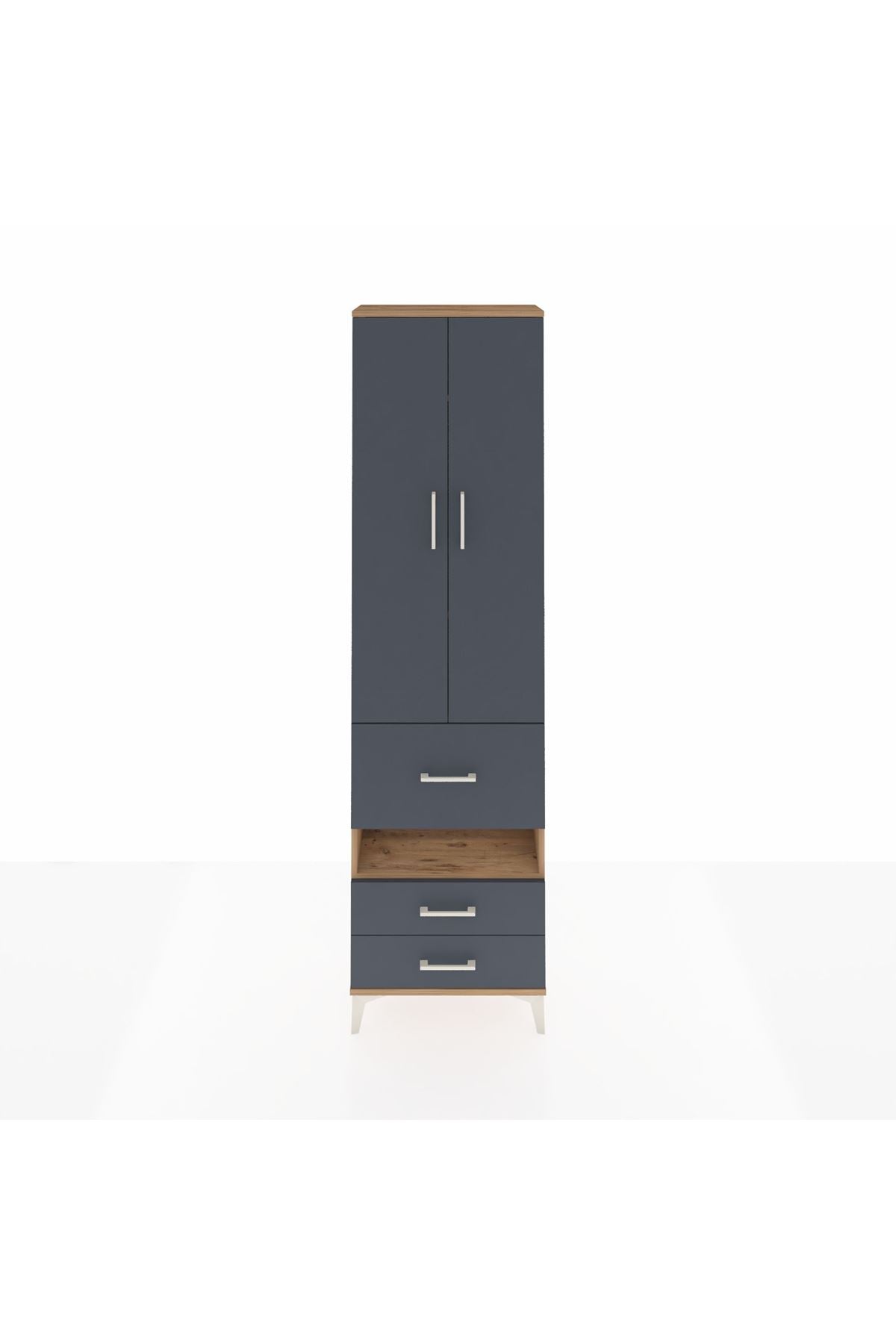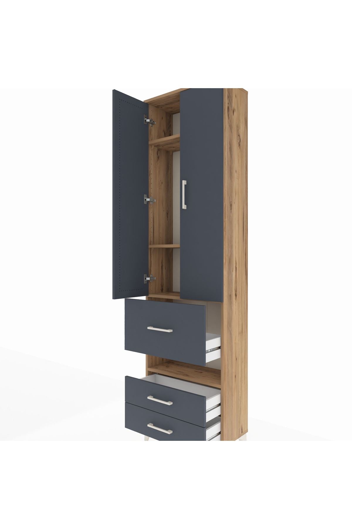 Arges Dolap 4 Raflı 3 Çekmeceli 2 Kapaklı 60x30x221 Çam-Antrasit