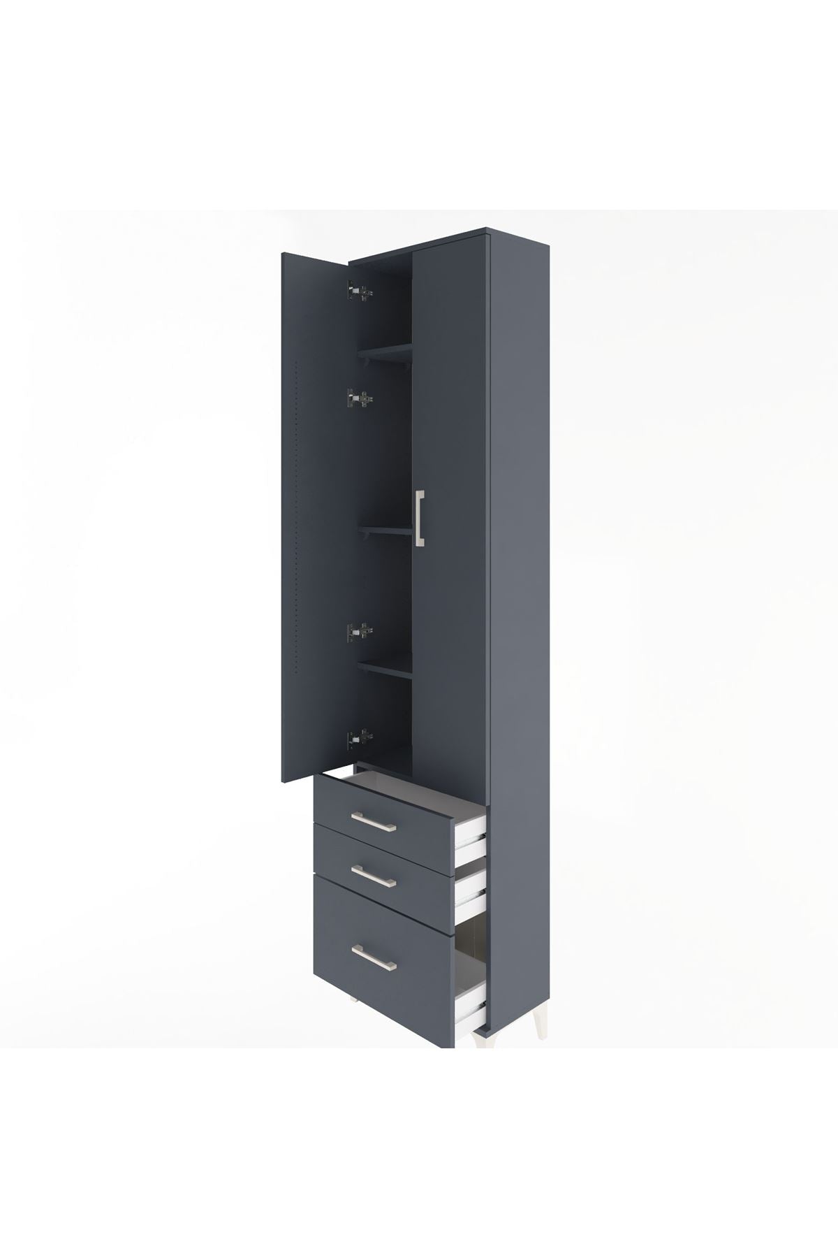 Arges Dolap 4 Raflı 3 Çekmeceli 2 Kapaklı 60x30x243 Antrasit-Antrasit