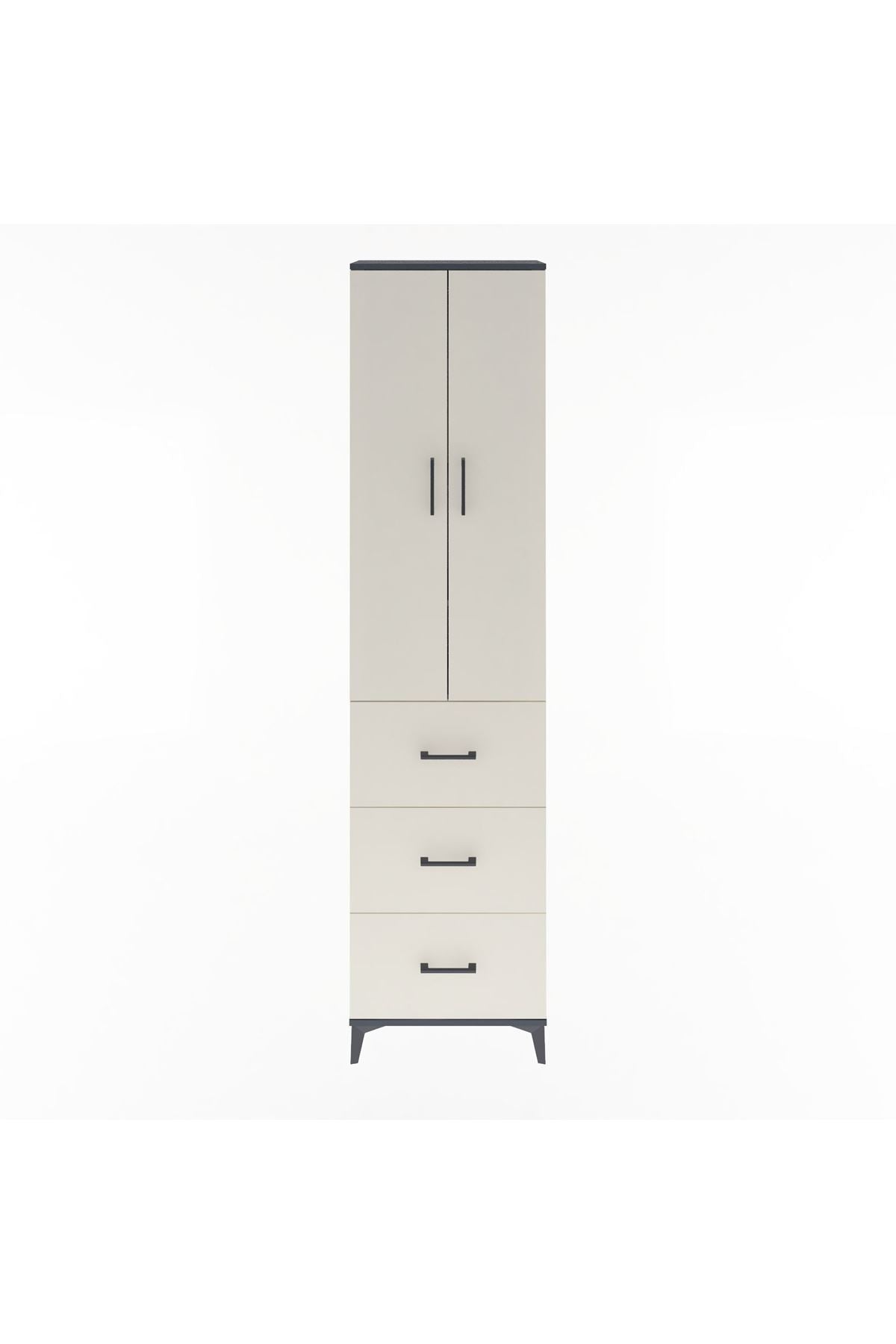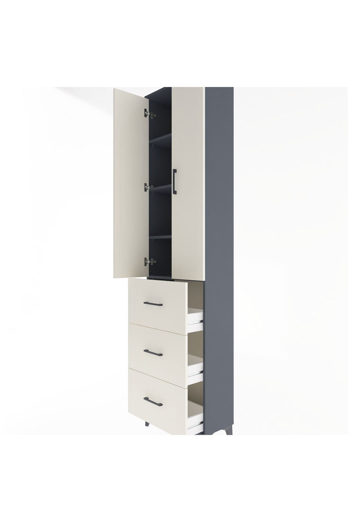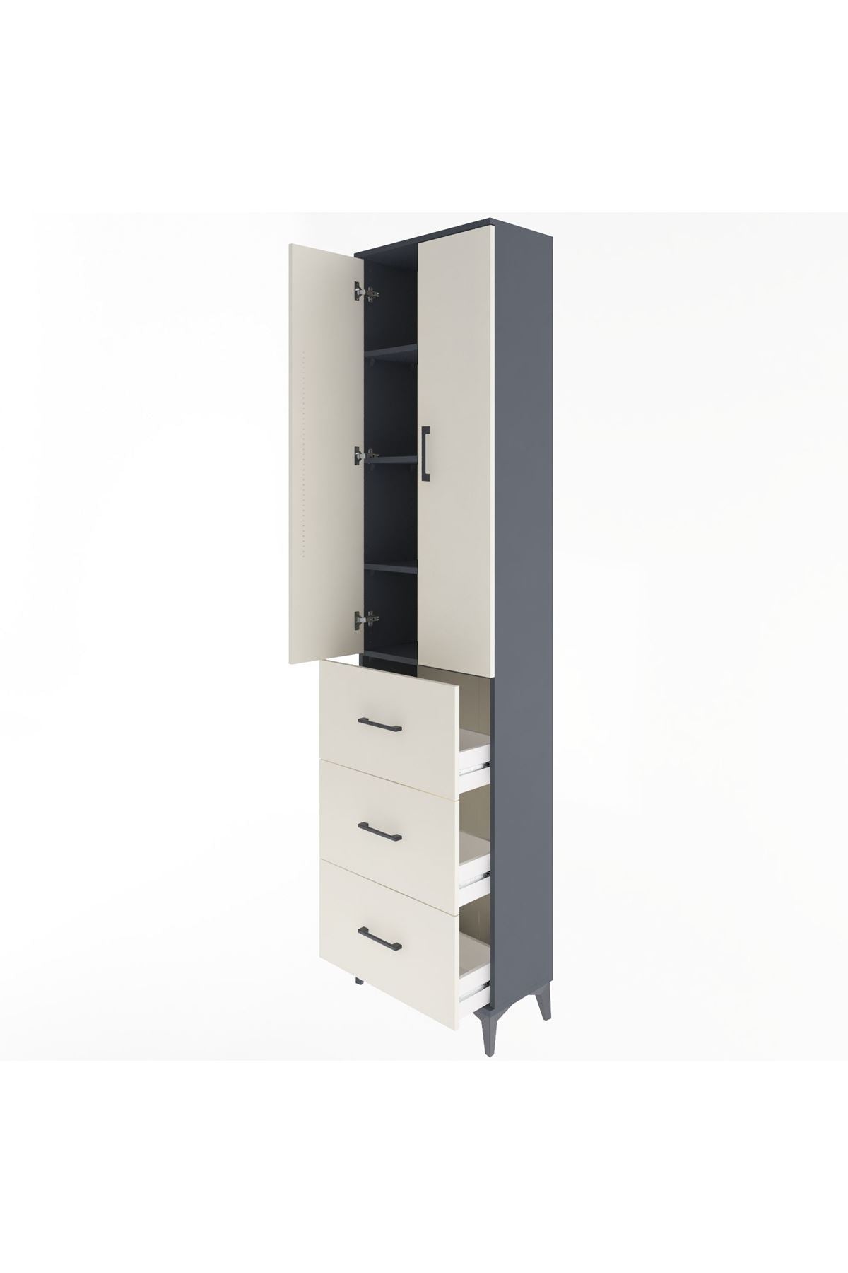 Arges Dolap 4 Raflı 3 Çekmeceli 2 Kapaklı 60x30x243 Antrasit-Aytaşı