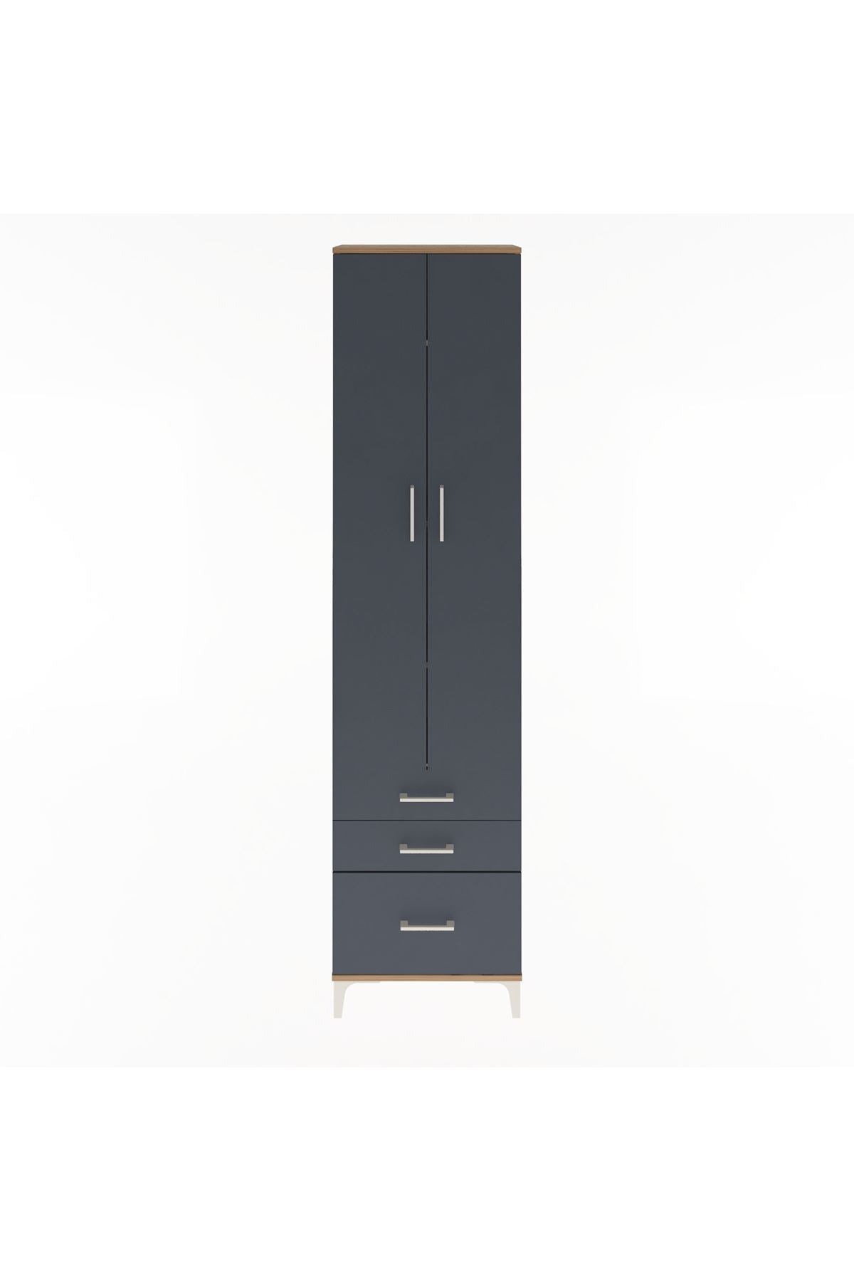 Arges Dolap 4 Raflı 3 Çekmeceli 2 Kapaklı 60x30x243 Çam-Antrasit