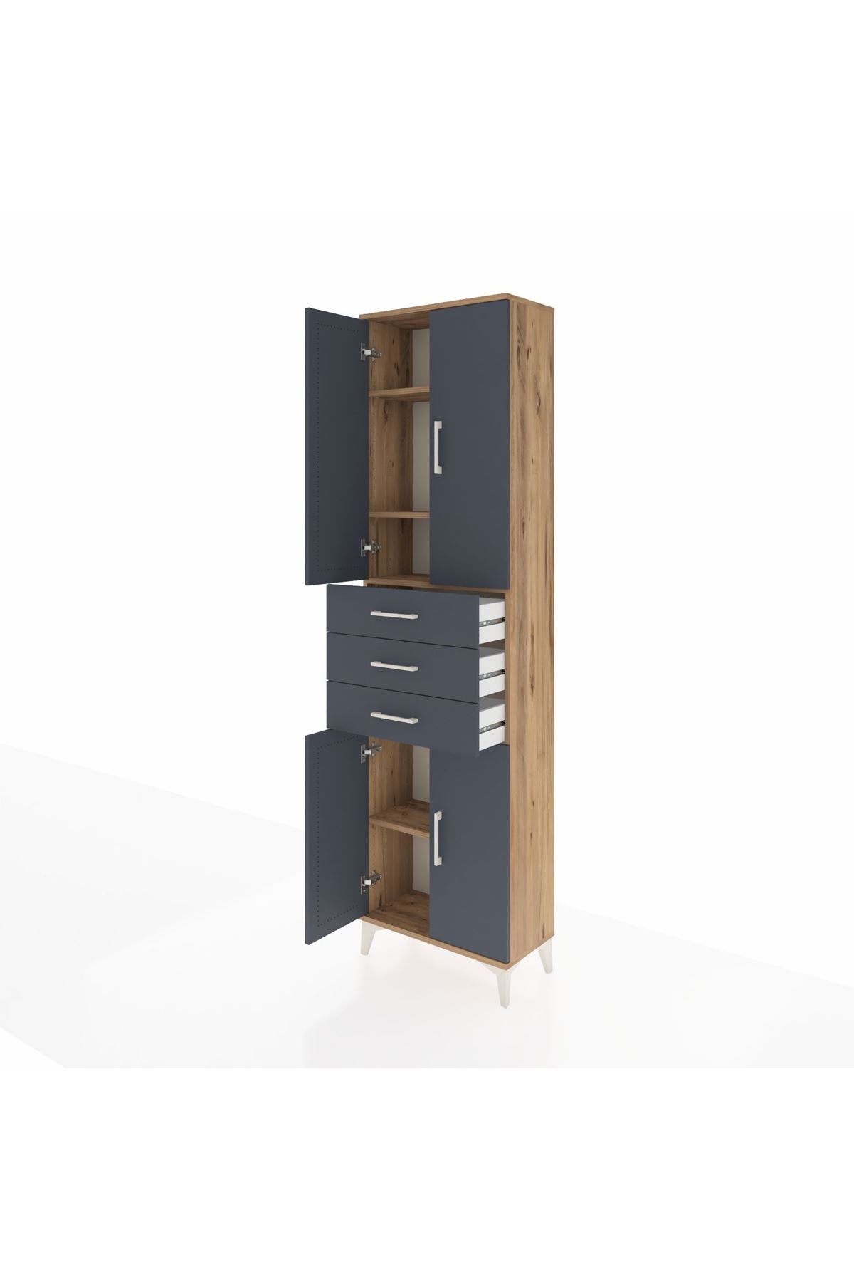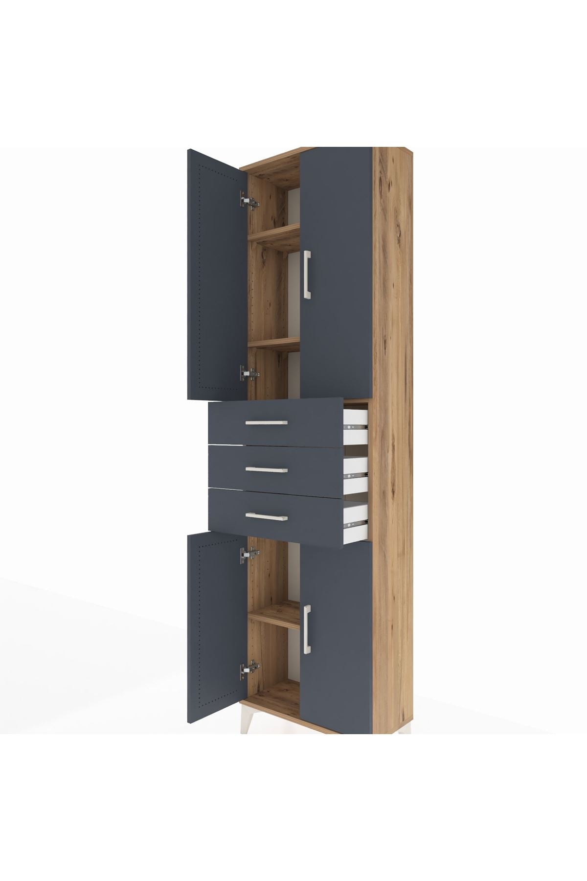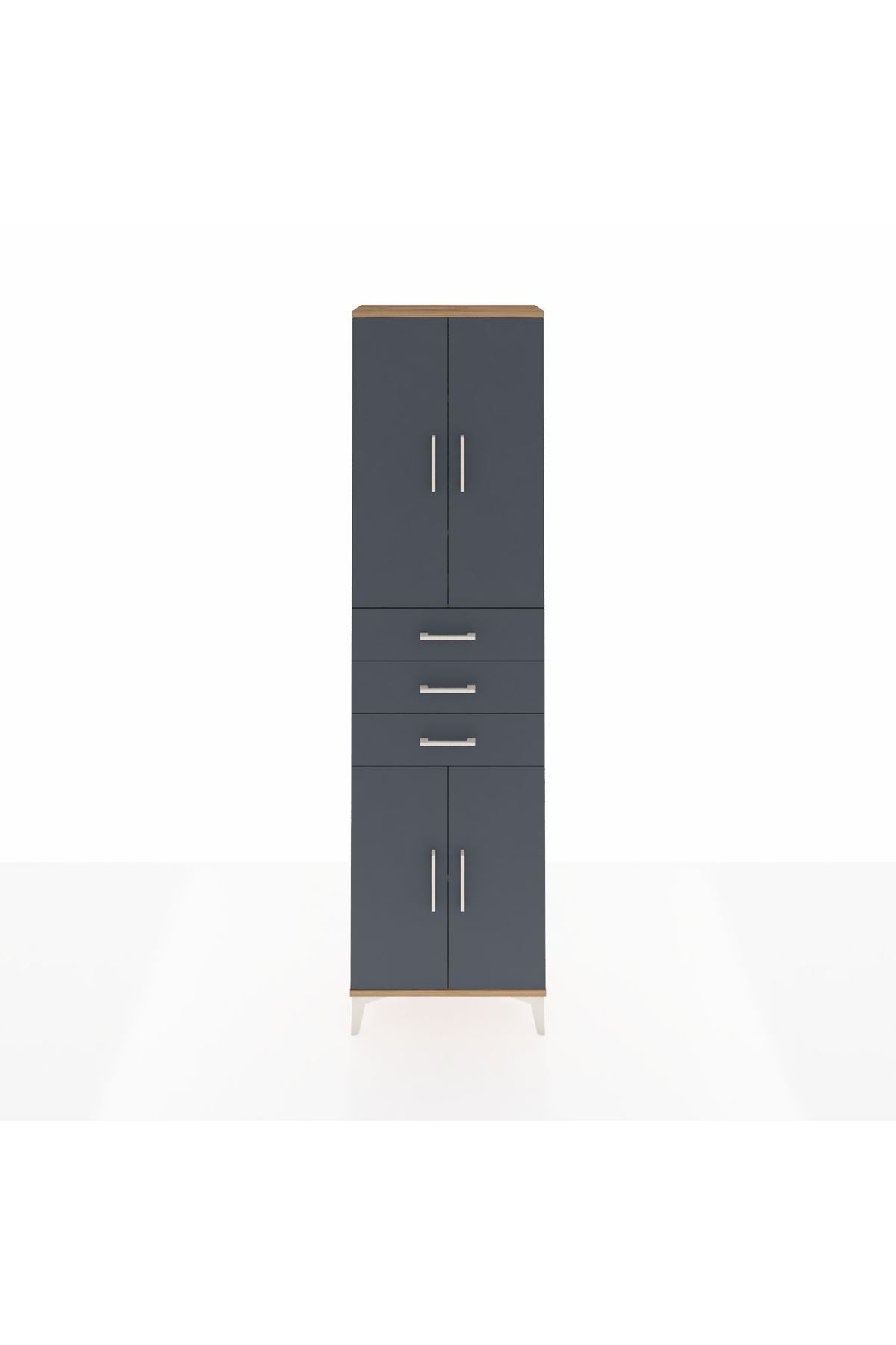 Arges Dolap 4 Raflı 3 Çekmeceli 4 Kapaklı 60x30x221 Çam-Antrasit