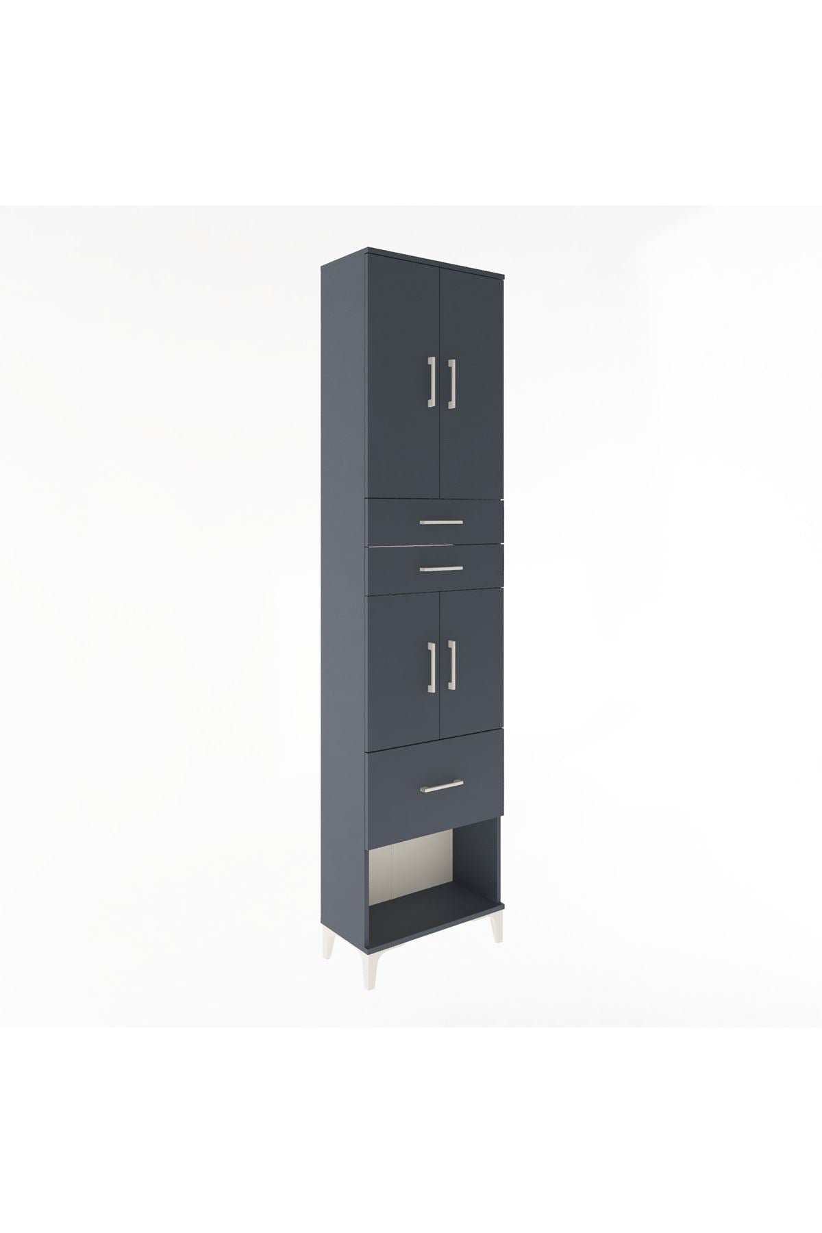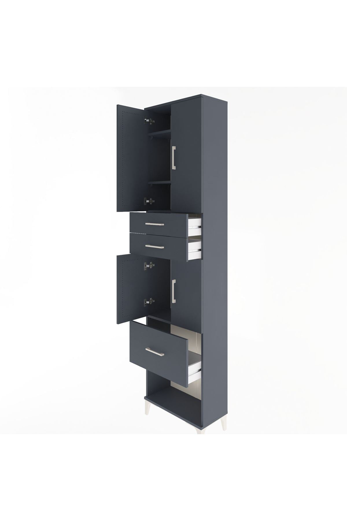 Arges Dolap 4 Raflı 3 Çekmeceli 4 Kapaklı 60x30x243 Antrasit-Antrasit
