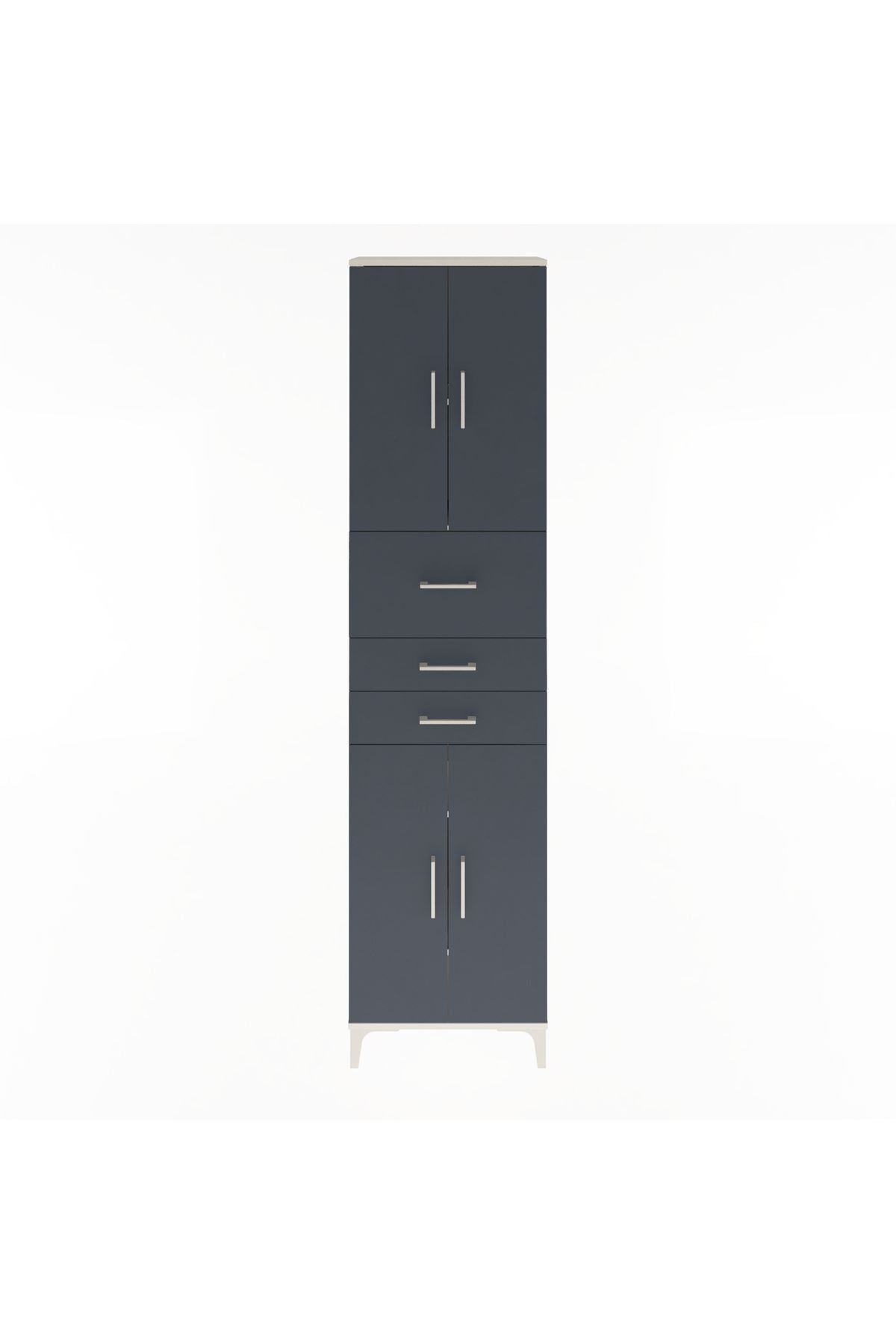 Arges Dolap 4 Raflı 3 Çekmeceli 4 Kapaklı 60x30x243 Aytaşı-Antrasit