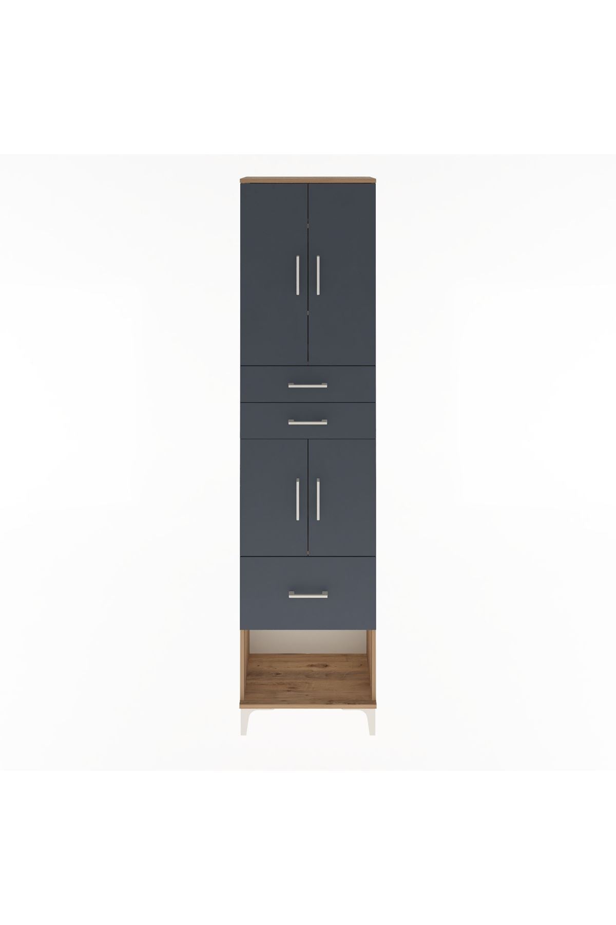 Arges Dolap 4 Raflı 3 Çekmeceli 4 Kapaklı 60x30x243 Çam-Antrasit