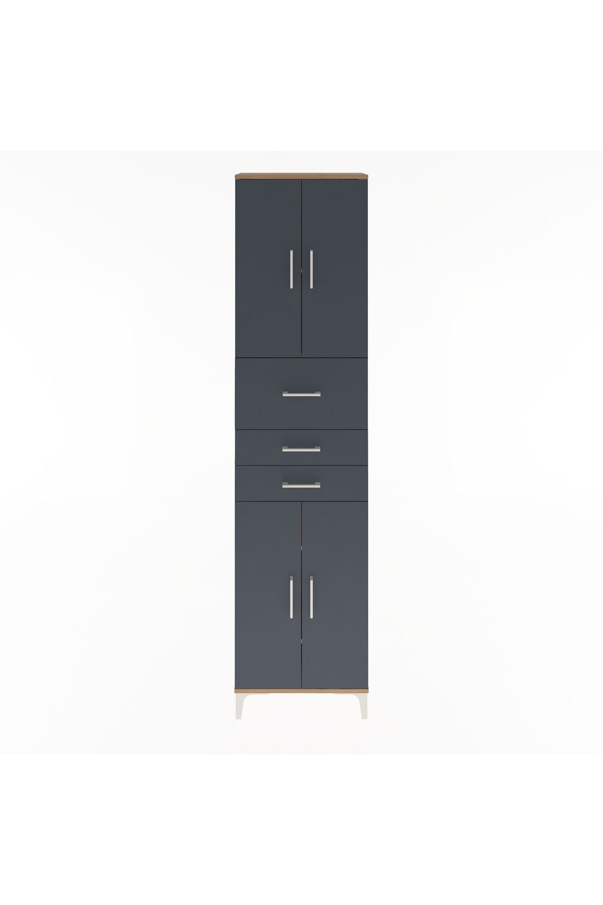 Arges Dolap 4 Raflı 3 Çekmeceli 4 Kapaklı 60x30x243 Çam-Antrasit