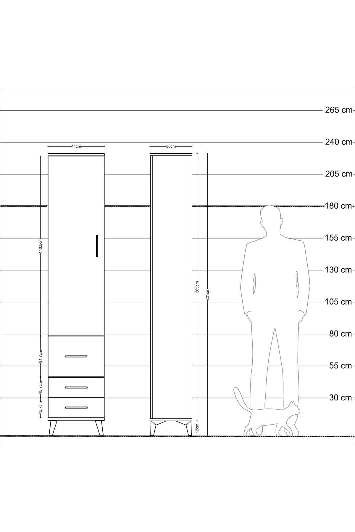 Arges Dolap 4 Raflı 3 Çekmeceli Tek Kapaklı 44x30x221 Aytaşı-Çam