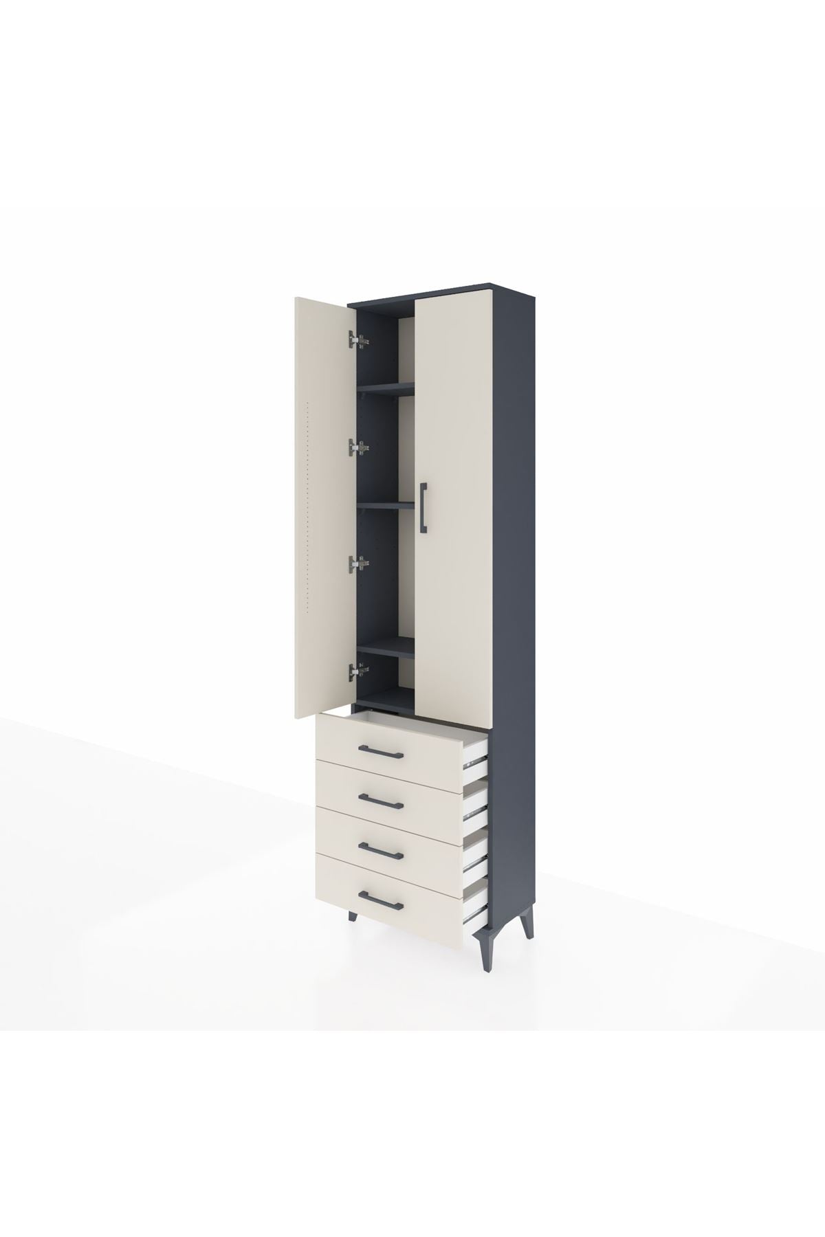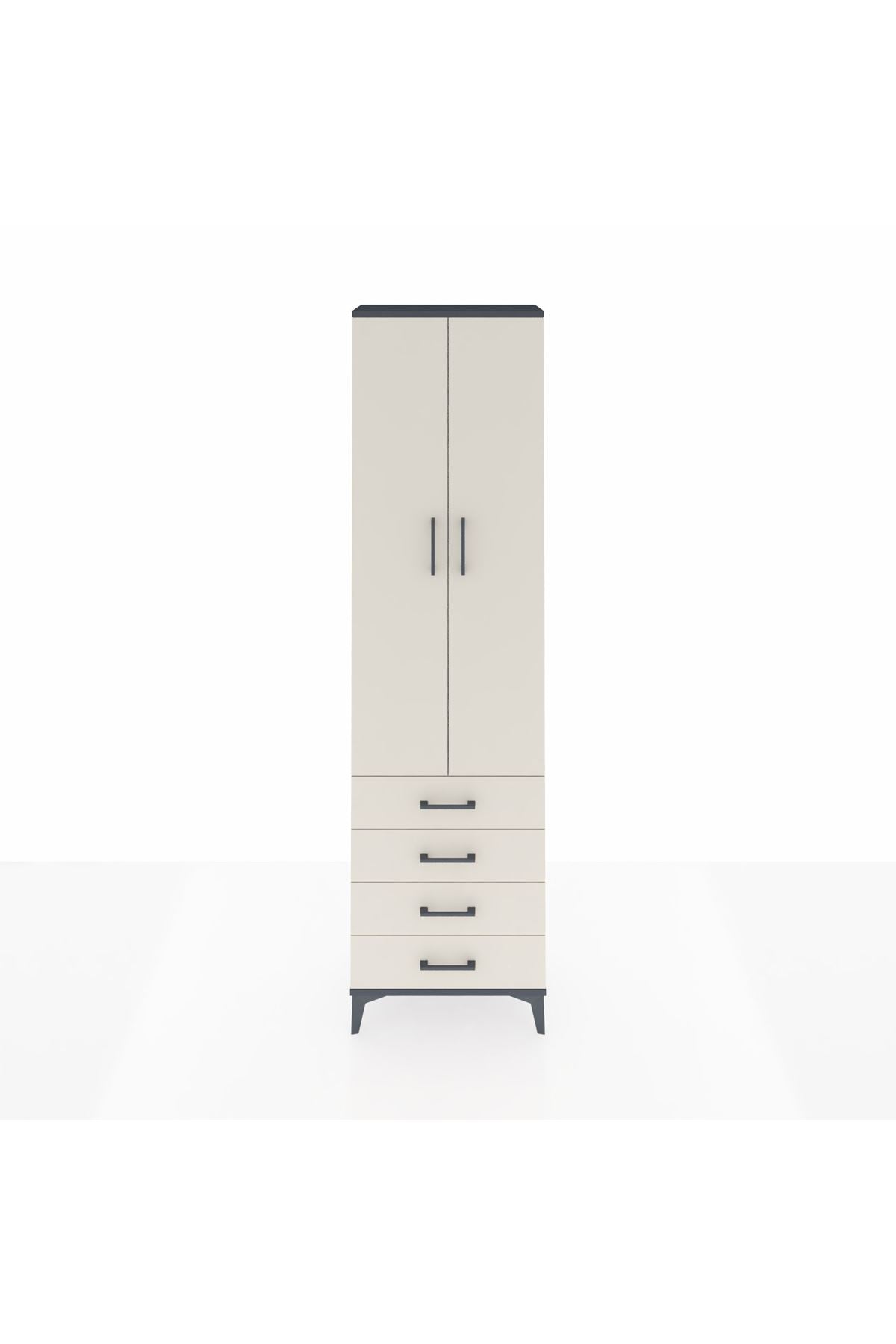 Arges Dolap 4 Raflı 4 Çekmeceli 2 Kapaklı 60x30x221 Antrasit-Aytaşı