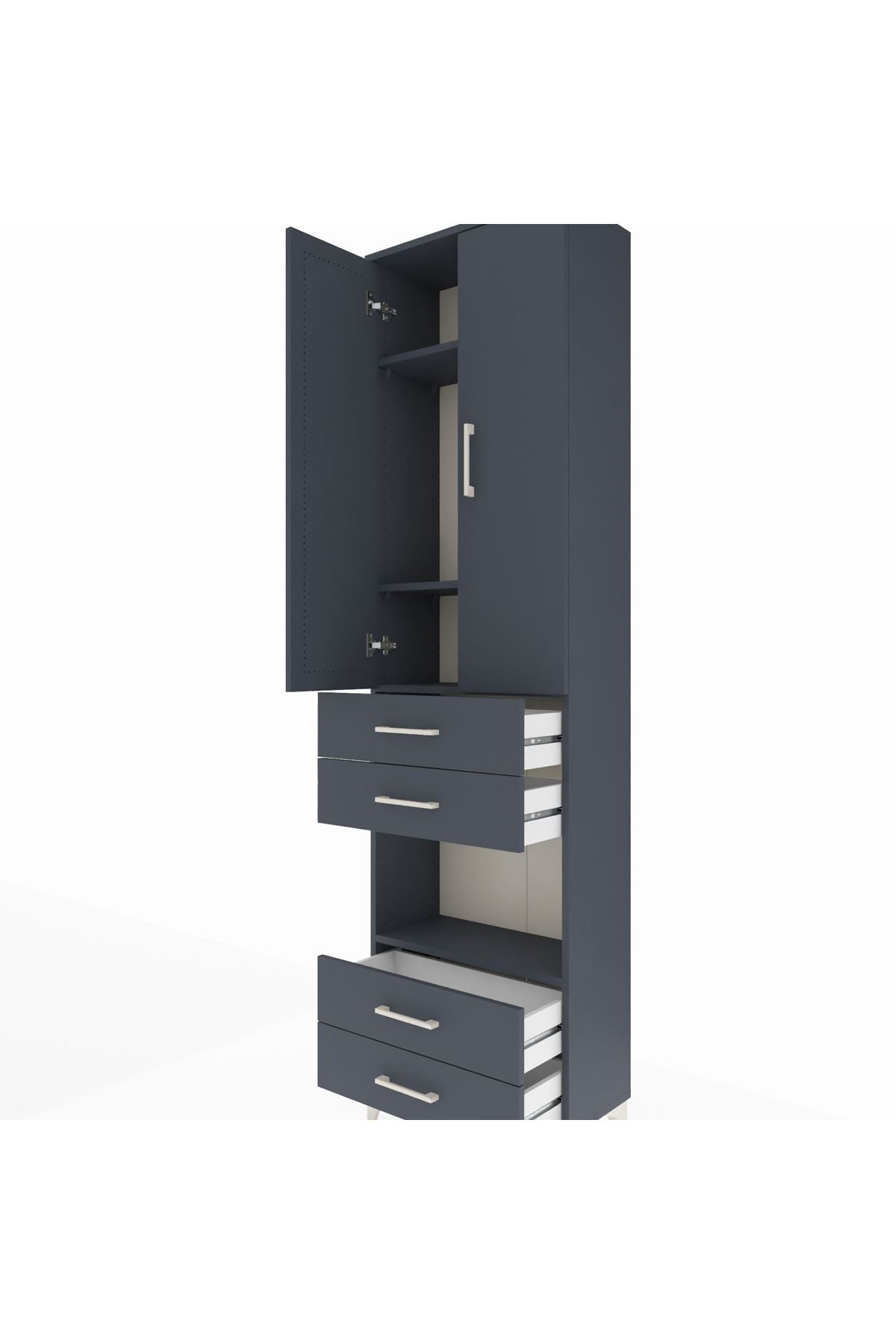 Arges Dolap 4 Raflı 4 Çekmeceli 2 Kapaklı 60x30x221 Antrasit-Antrasit