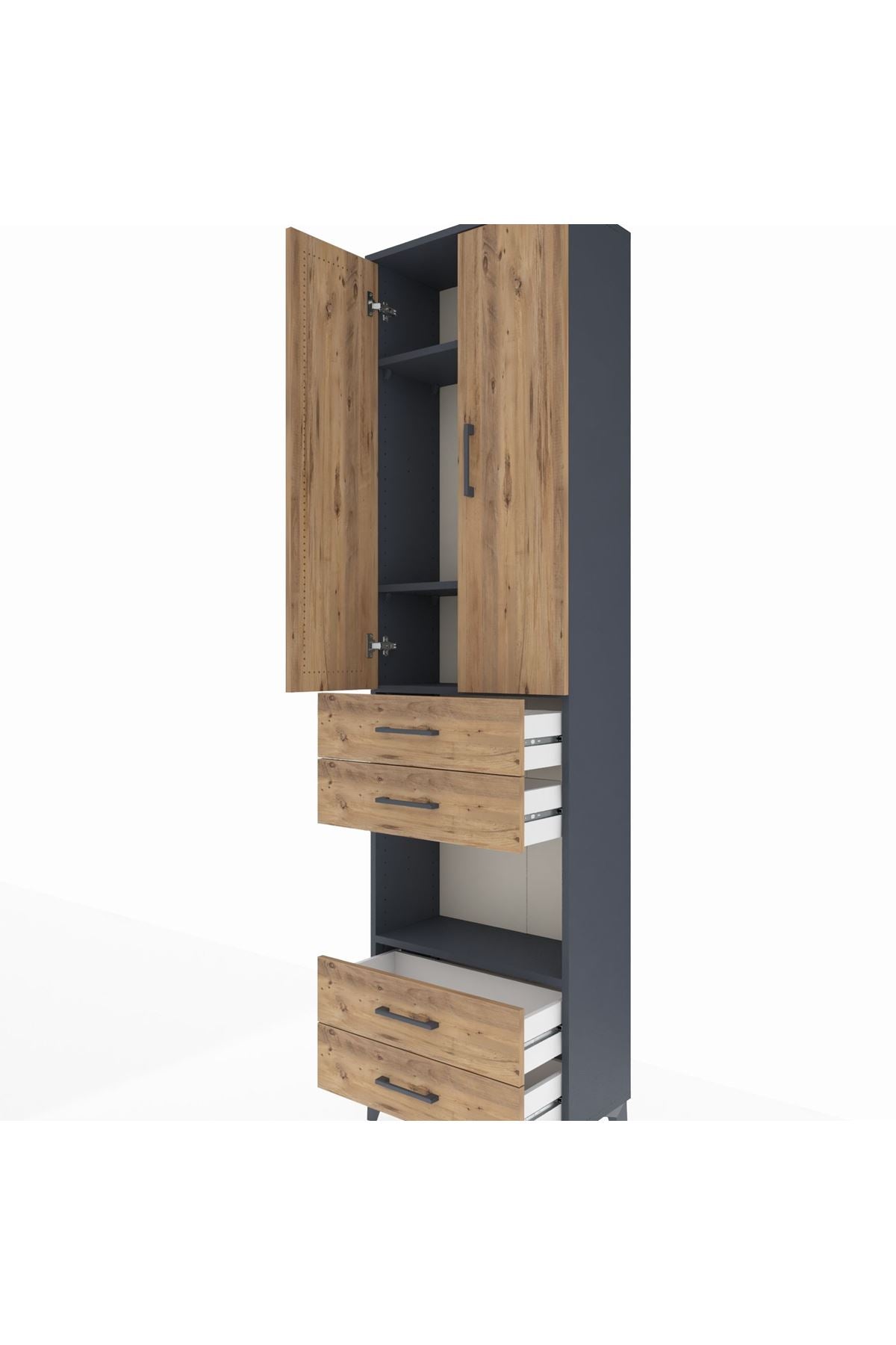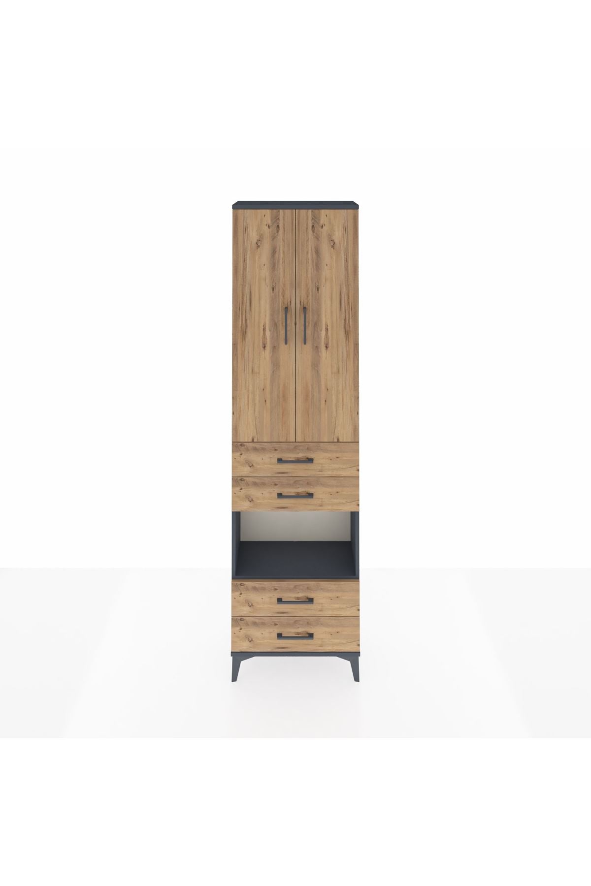 Arges Dolap 4 Raflı 4 Çekmeceli 2 Kapaklı 60x30x221 Antrasit-Çam