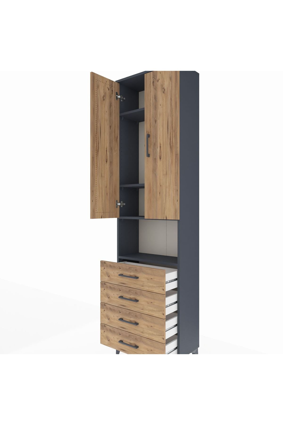 Arges Dolap 4 Raflı 4 Çekmeceli 2 Kapaklı 60x30x221 Antrasit-Çam