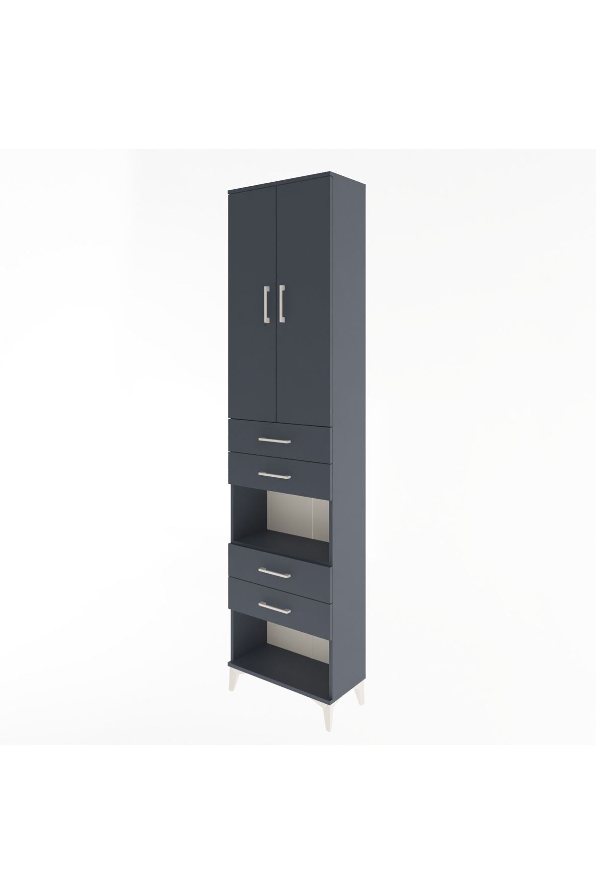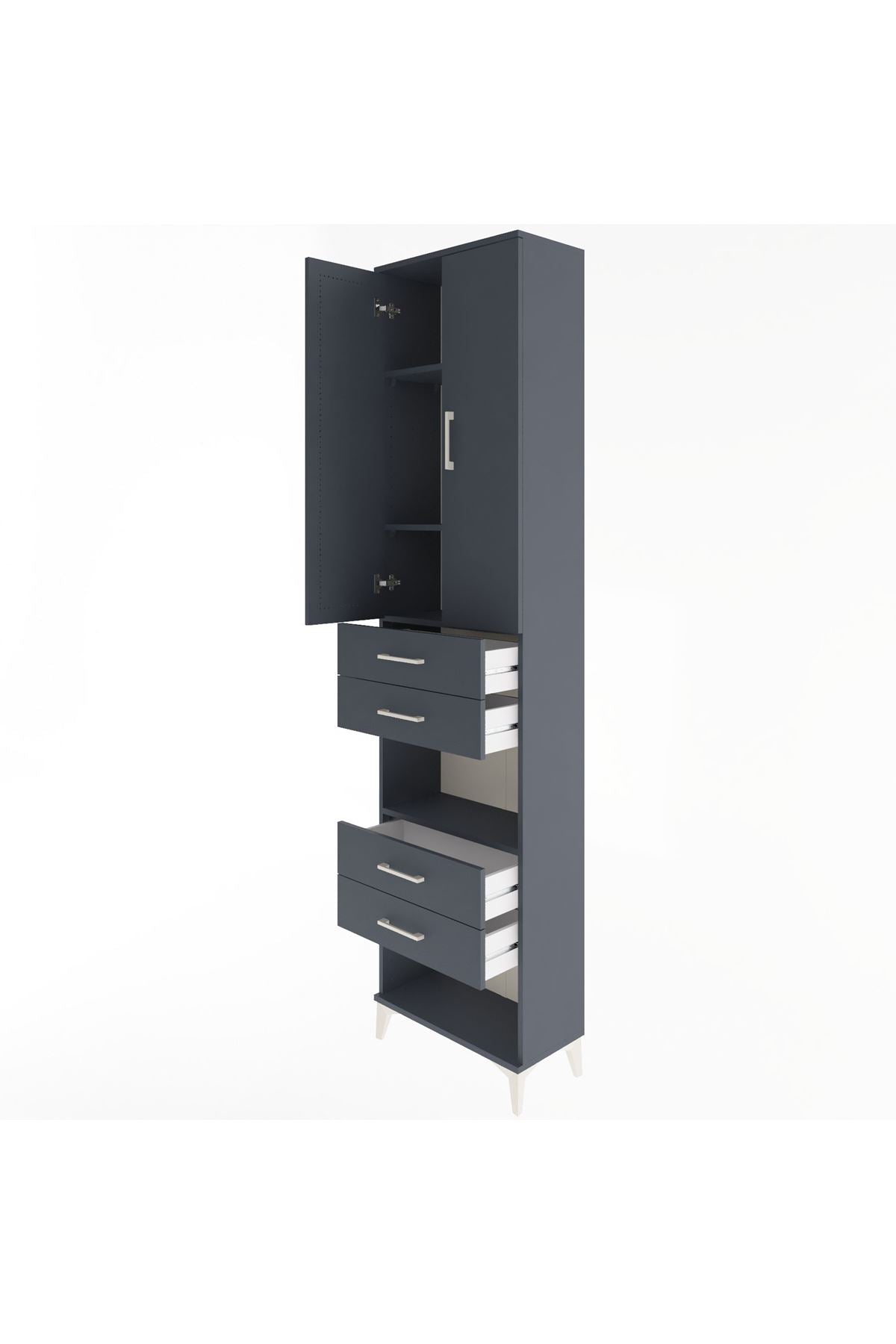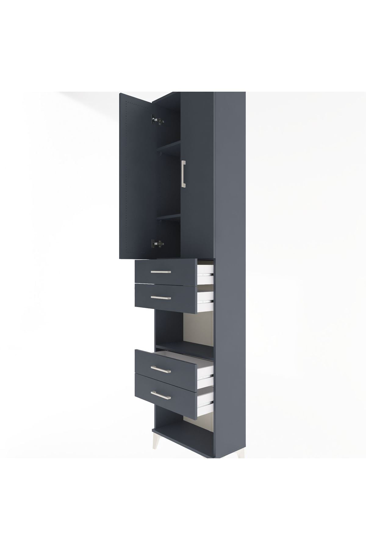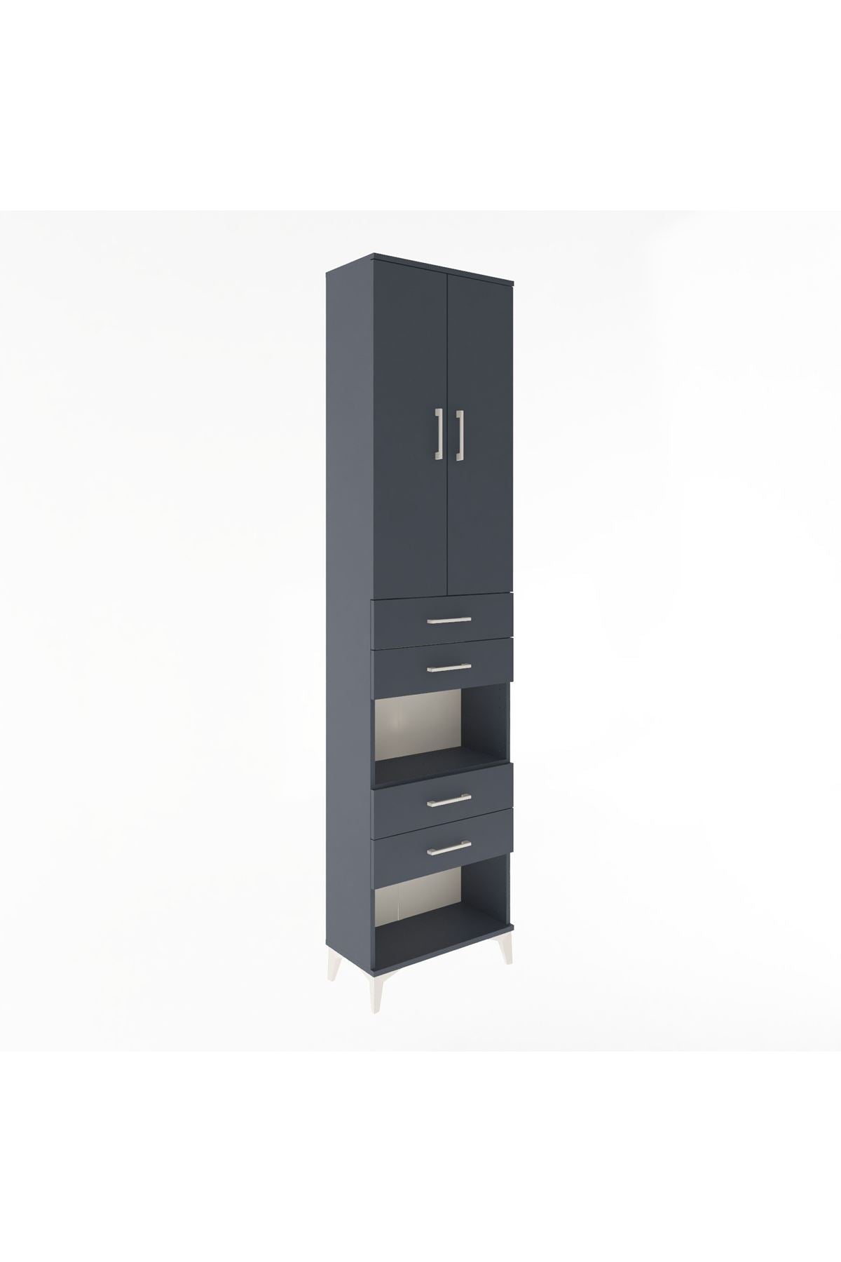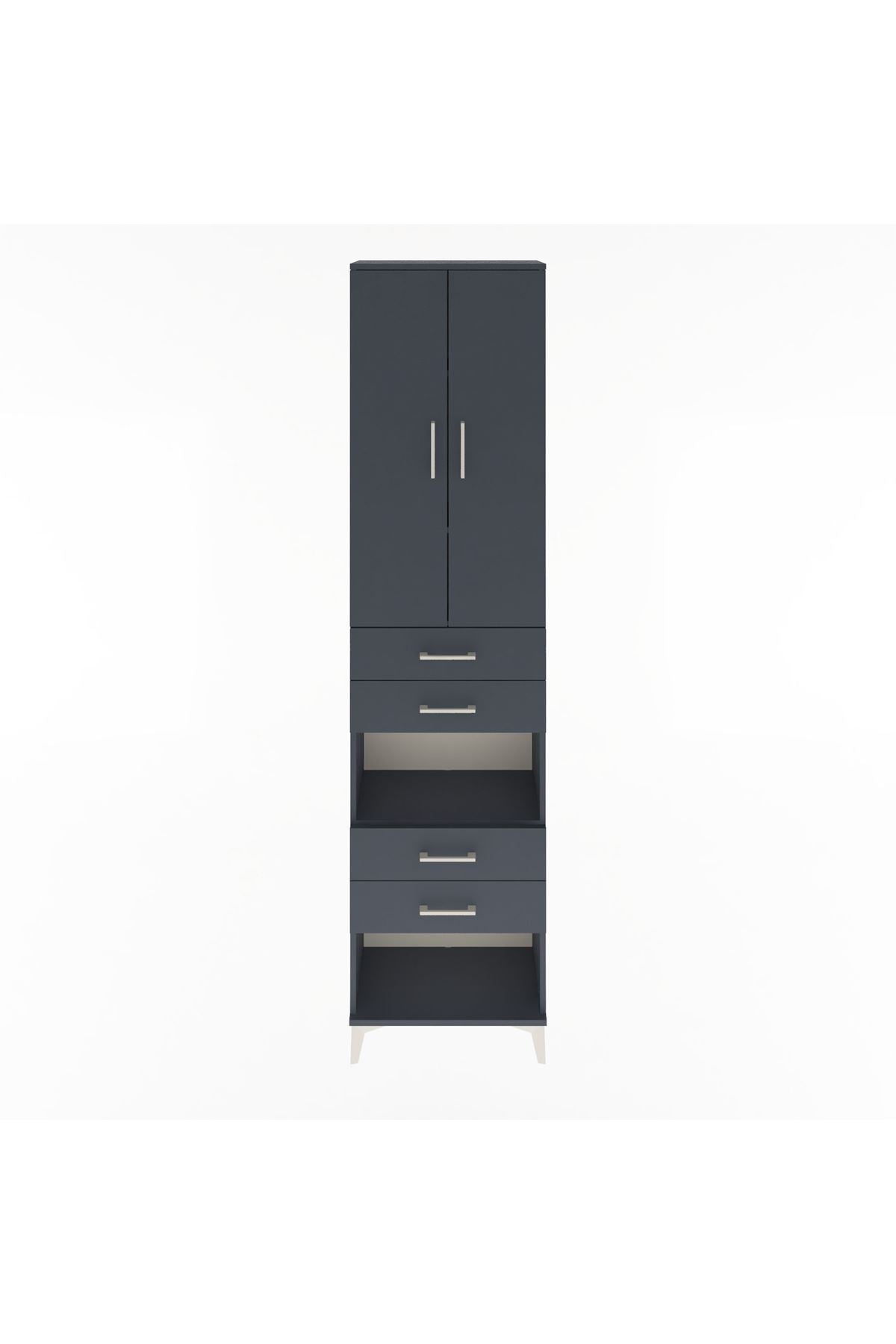 Arges Dolap 4 Raflı 4 Çekmeceli 2 Kapaklı 60x30x243 Antrasit-Antrasit