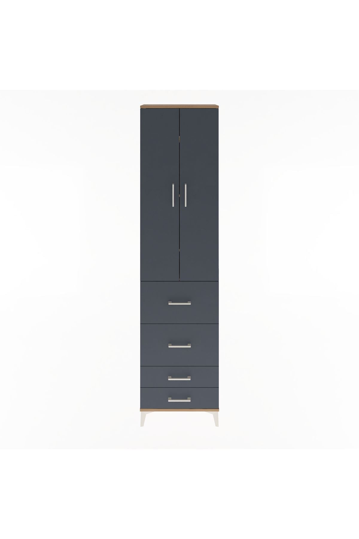 Arges Dolap 4 Raflı 4 Çekmeceli 2 Kapaklı 60x30x243 Çam-Antrasit
