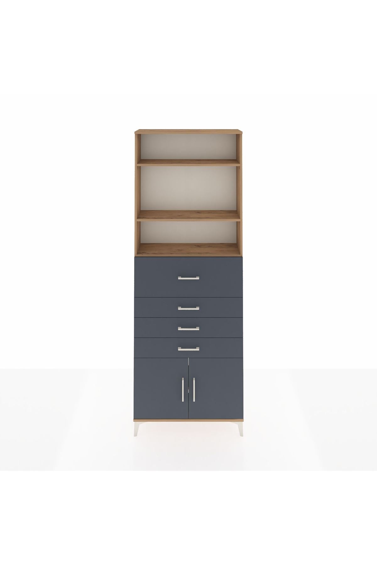 Arges Dolap 4 Raflı 4 Çekmeceli 2 Kapaklı 88x30x243 Çam-Antrasit