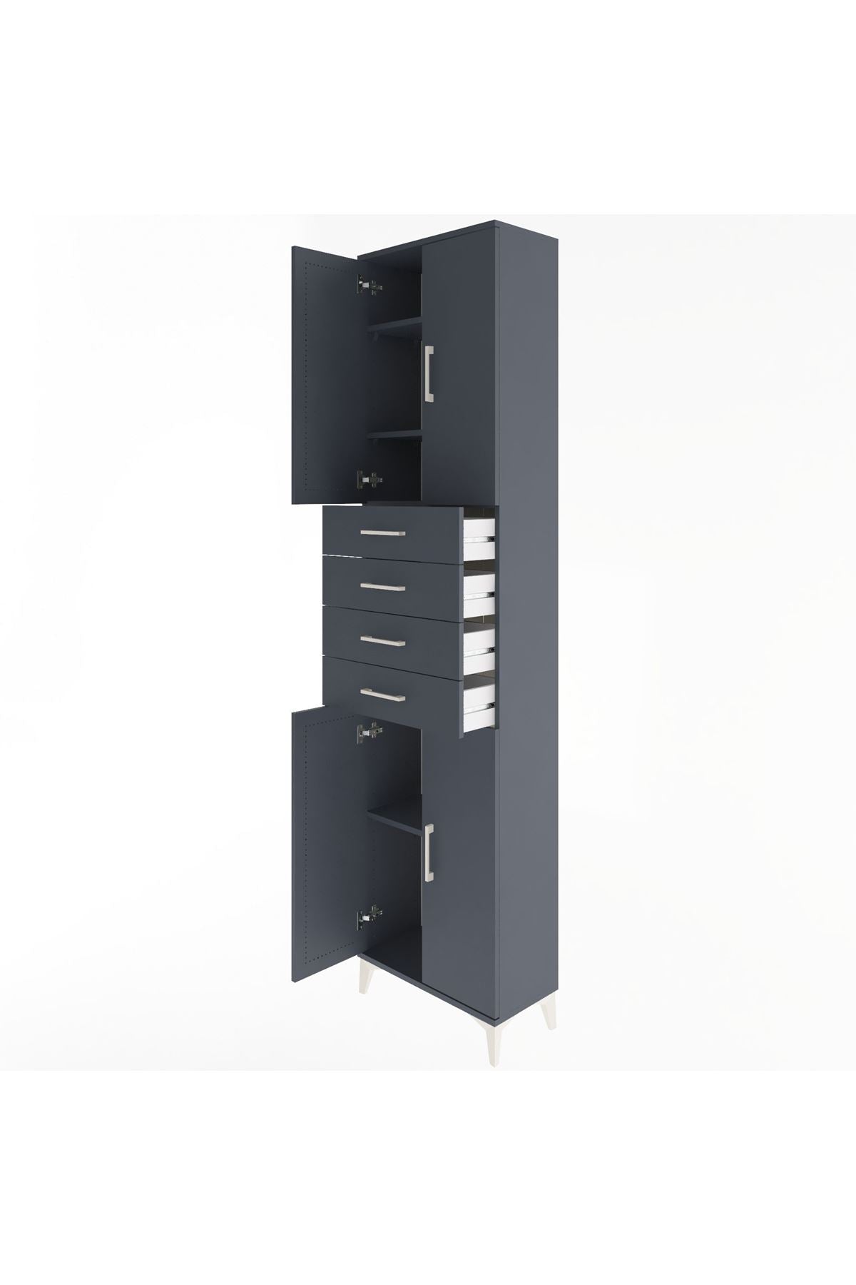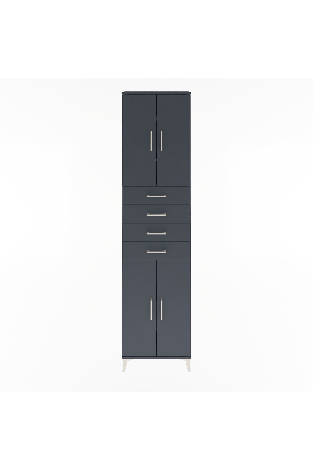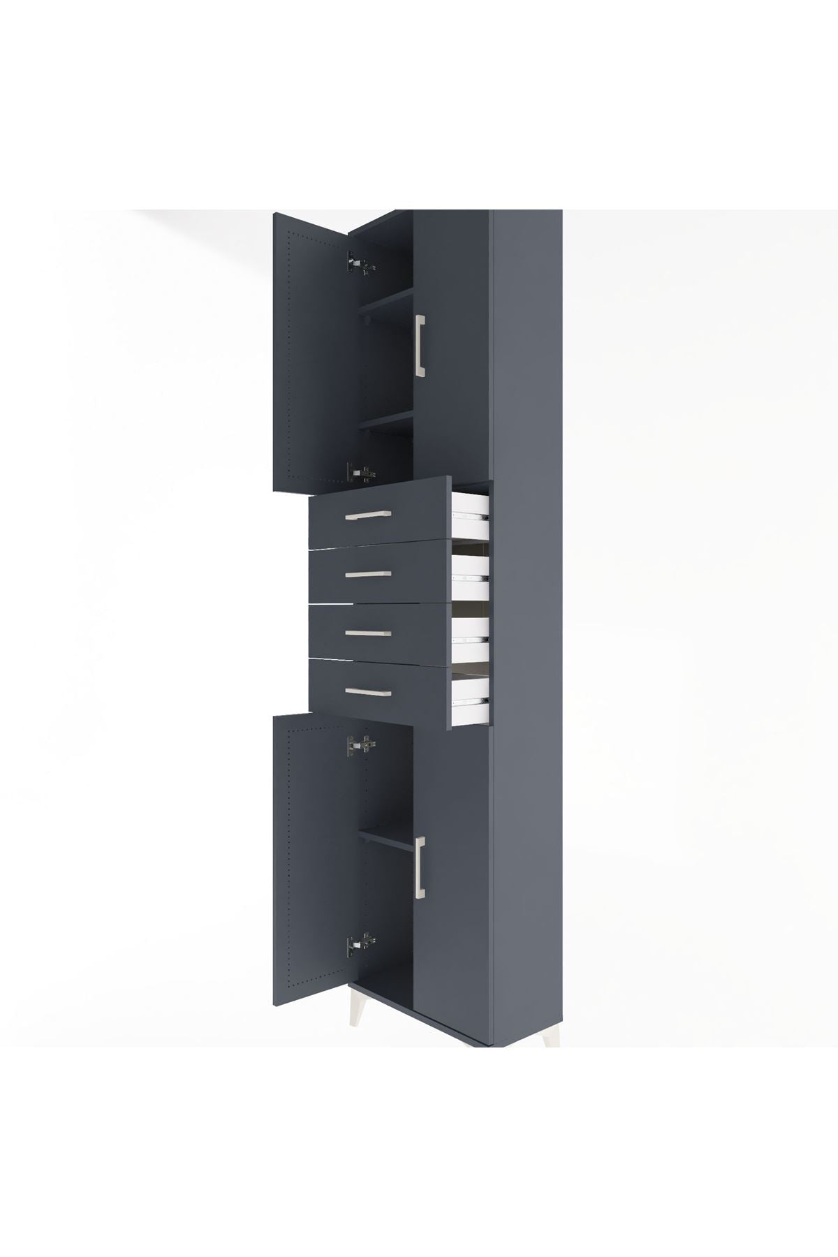Arges Dolap 4 Raflı 4 Çekmeceli 4 Kapaklı 60x30x243 Antrasit-Antrasit