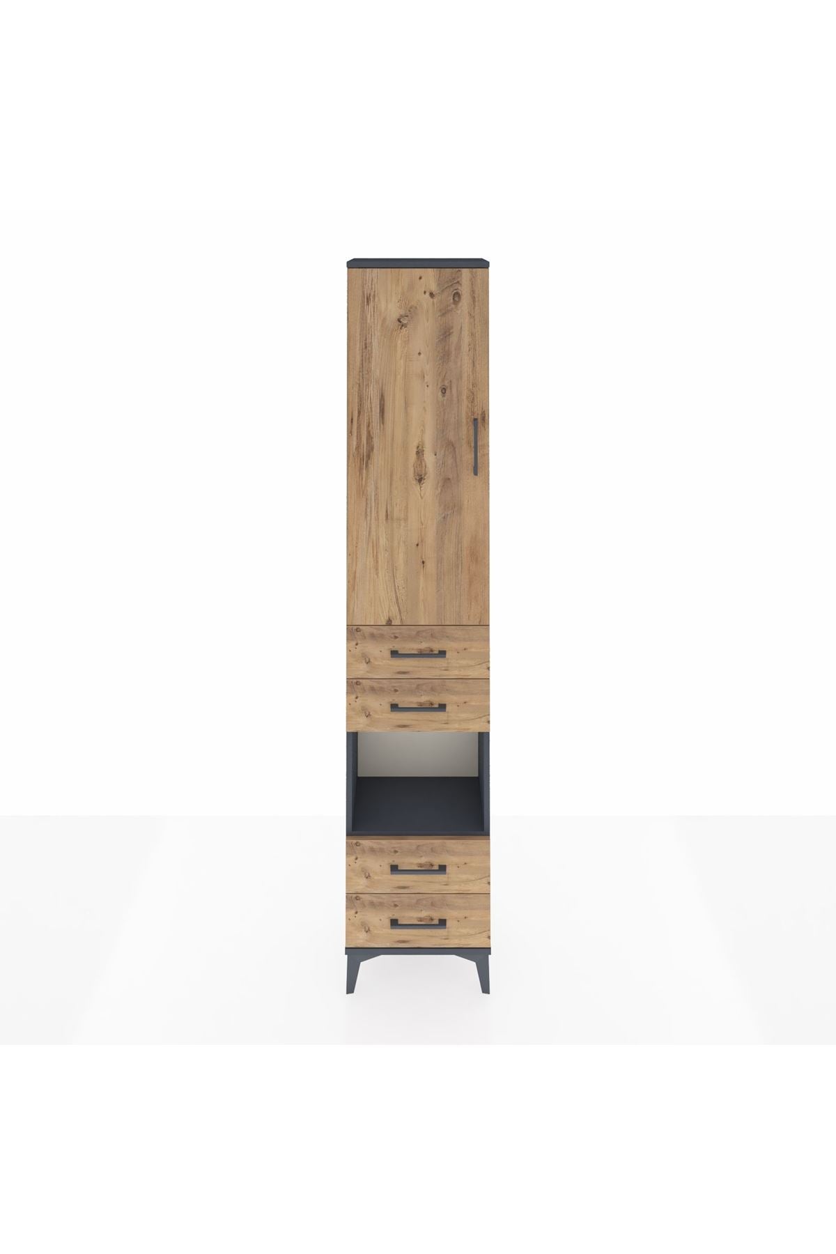 Arges Dolap 4 Raflı 4 Çekmeceli Tek Kapaklı 44x30x221 Antrasit-Çam