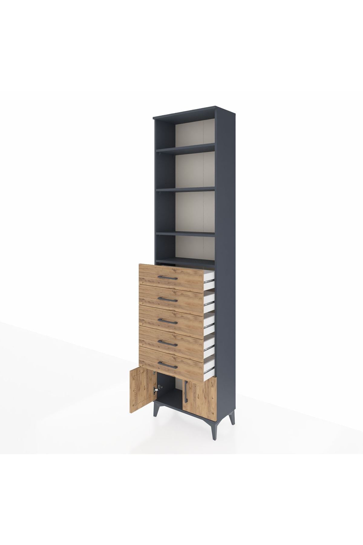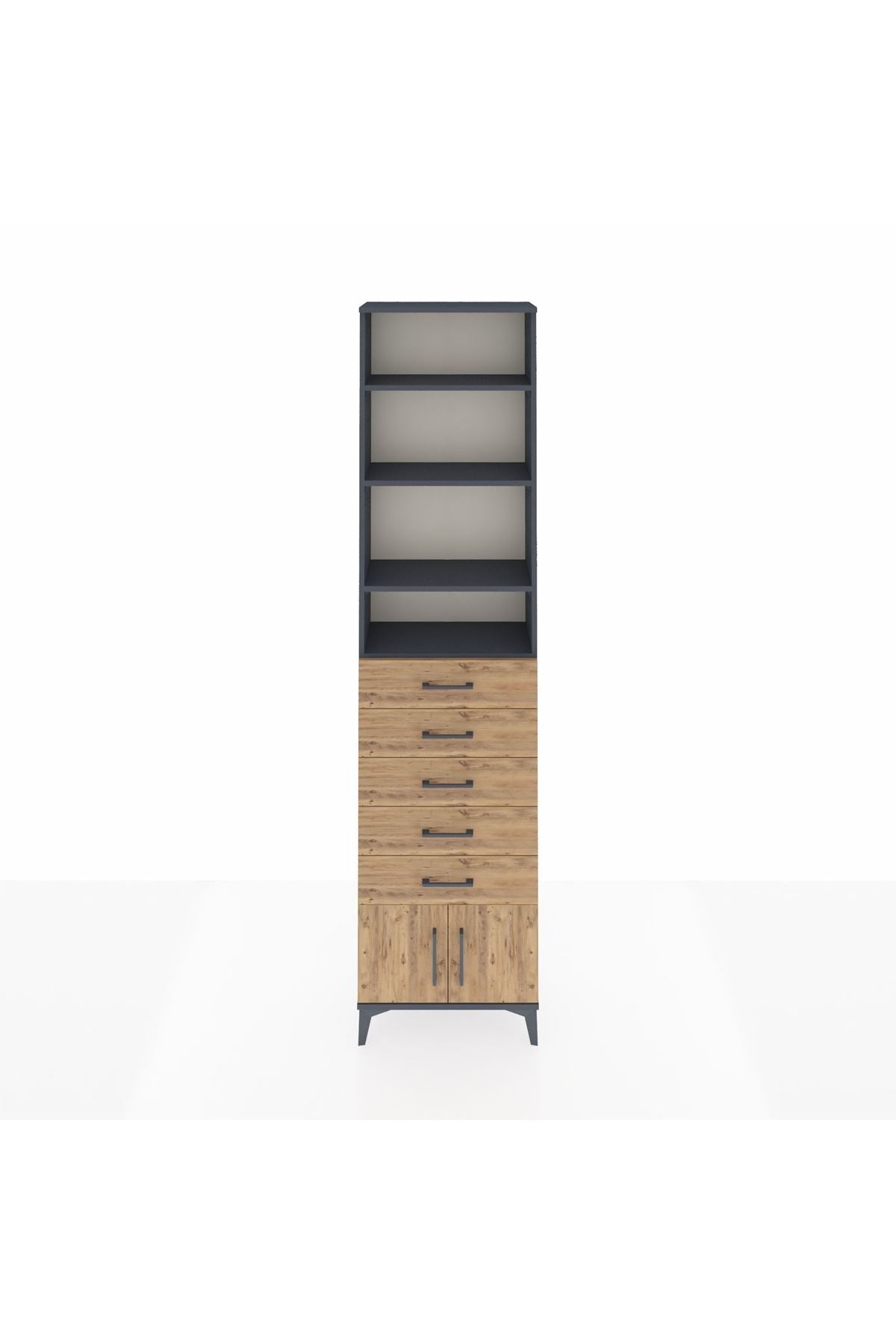 Arges Dolap 4 Raflı 5 Çekmeceli 2 Kapaklı 60x30x243 Antrasit-Çam