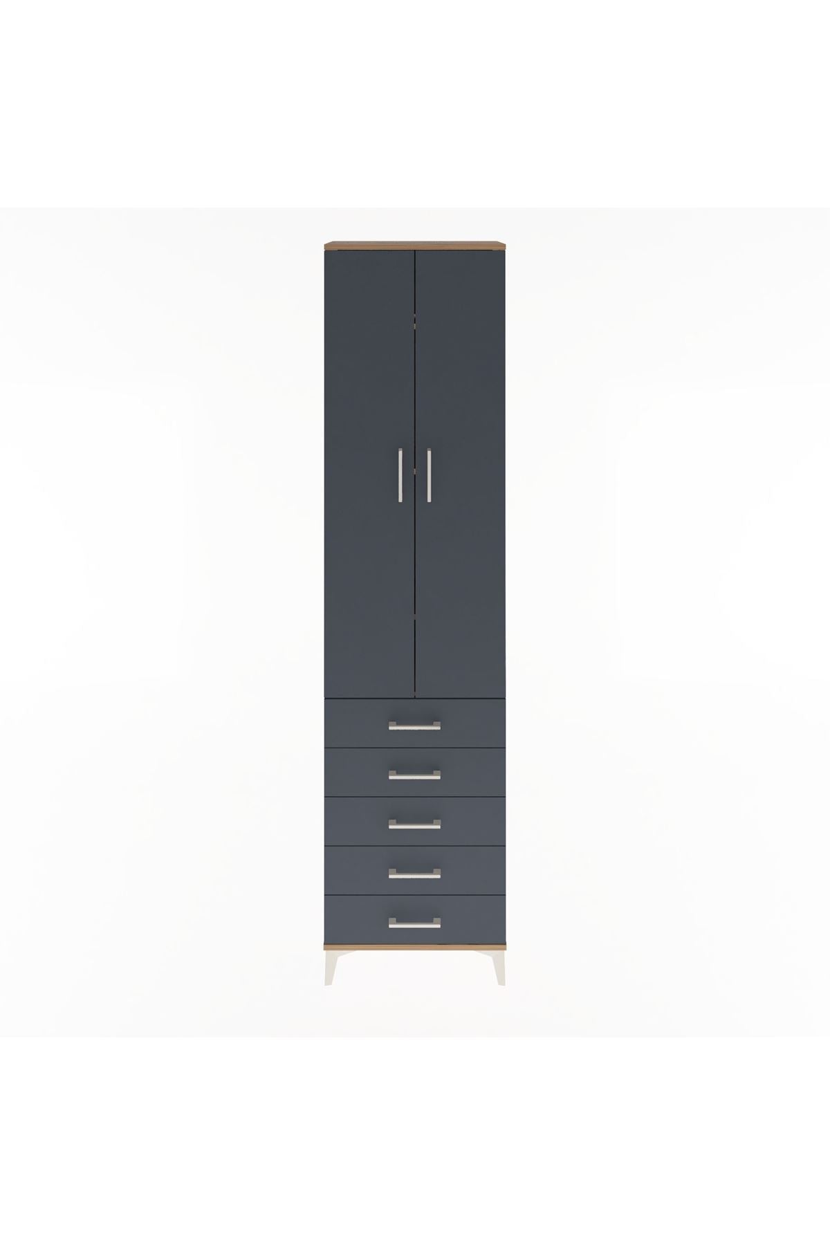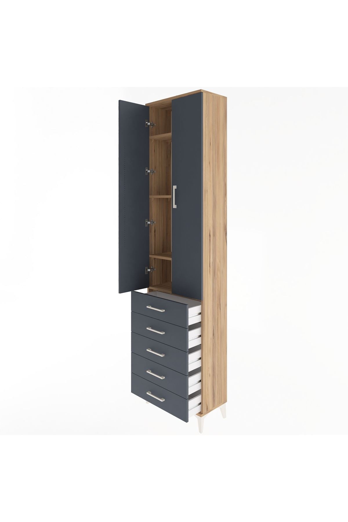 Arges Dolap 4 Raflı 5 Çekmeceli 2 Kapaklı 60x30x243 Çam-Antrasit