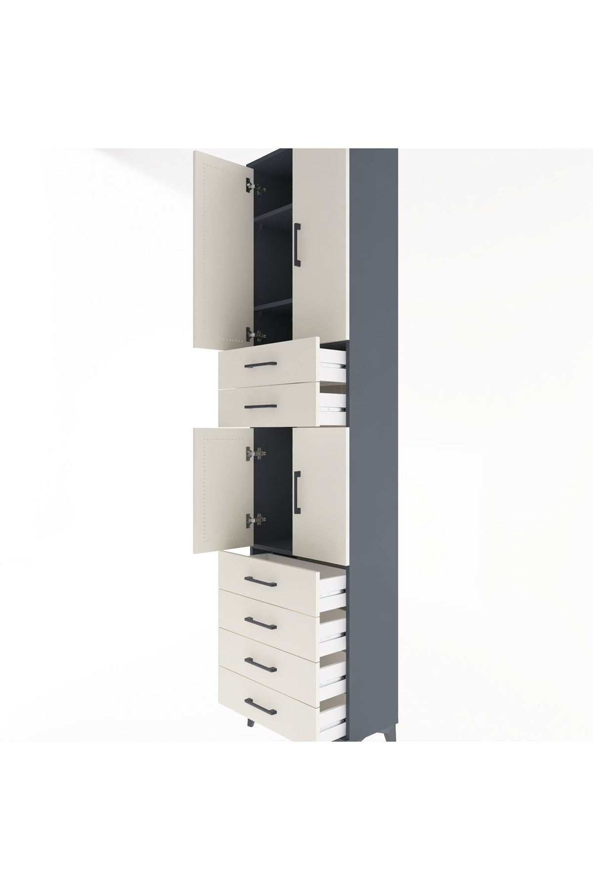 Arges Dolap 4 Raflı 6 Çekmeceli 4 Kapaklı 60x30x243 Antrasit-Aytaşı